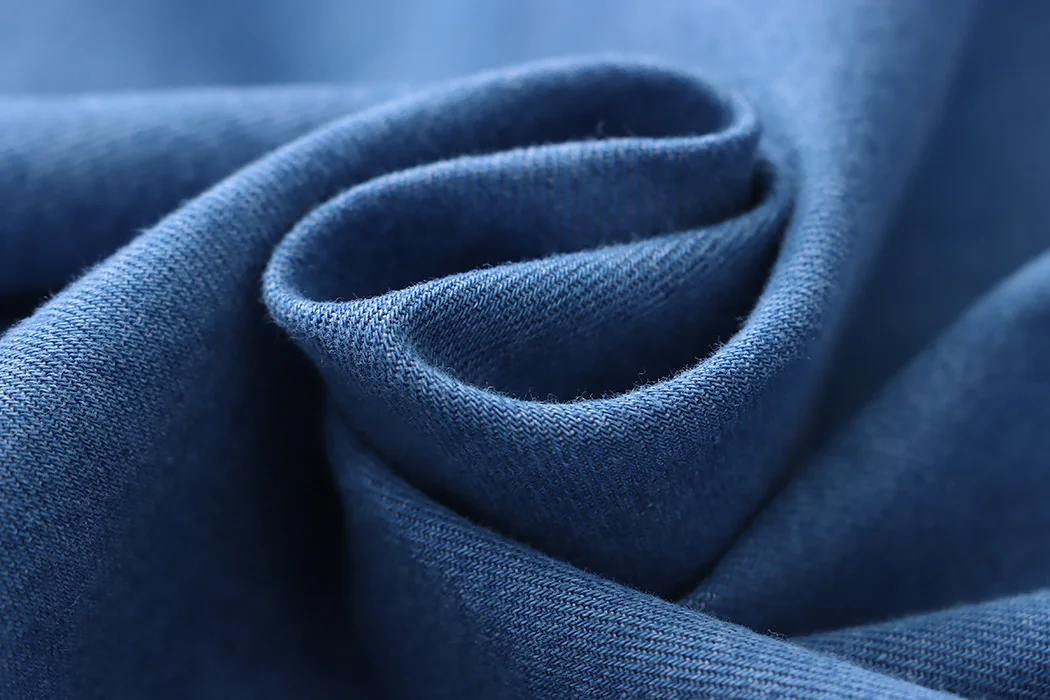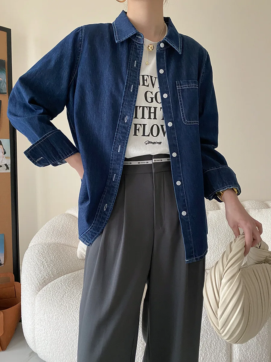 Custom Women's Blue Denim Button-Down Shirt with Chest Pocket