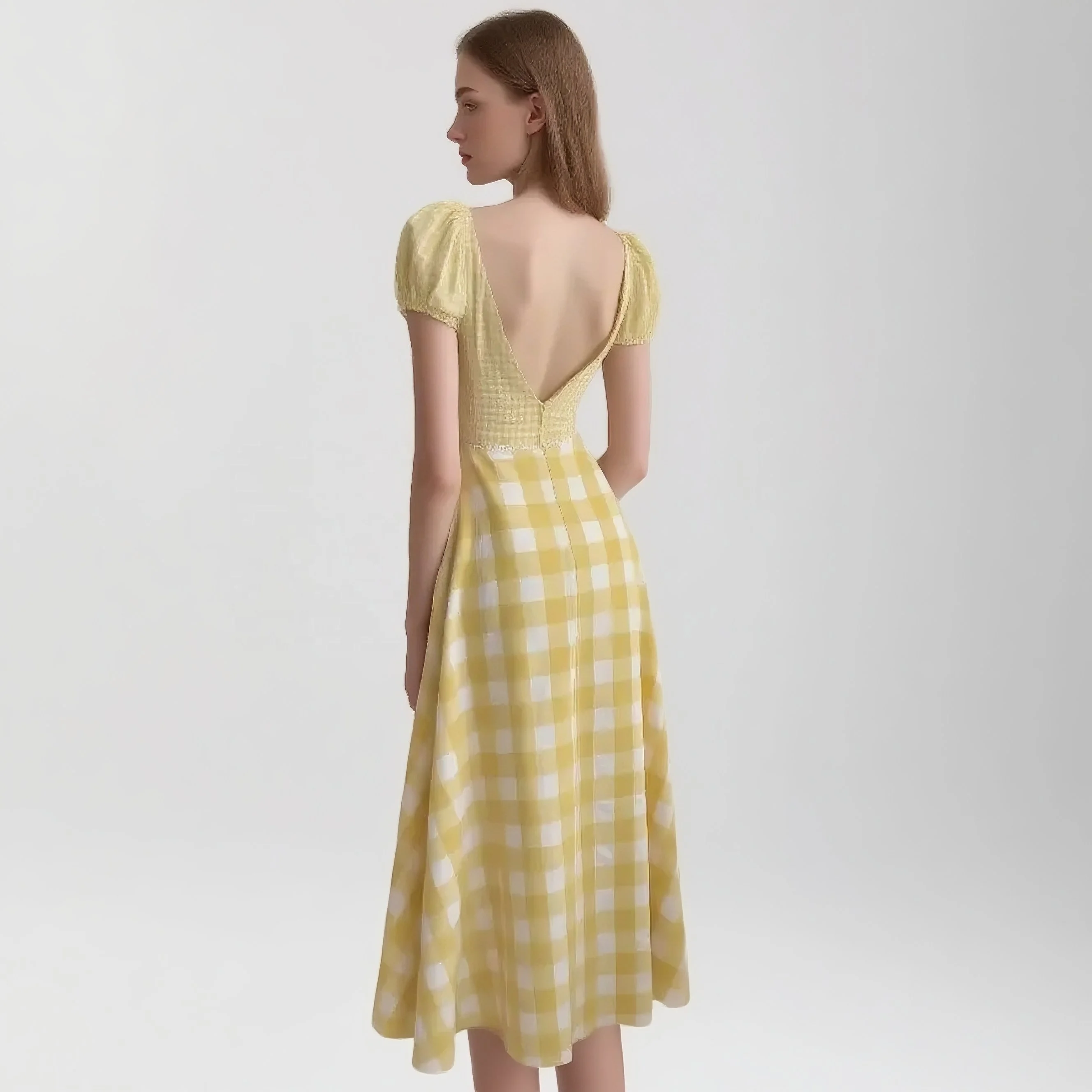 Custom Women's Square Neck Puff Sleeve Cotton Midi Dress