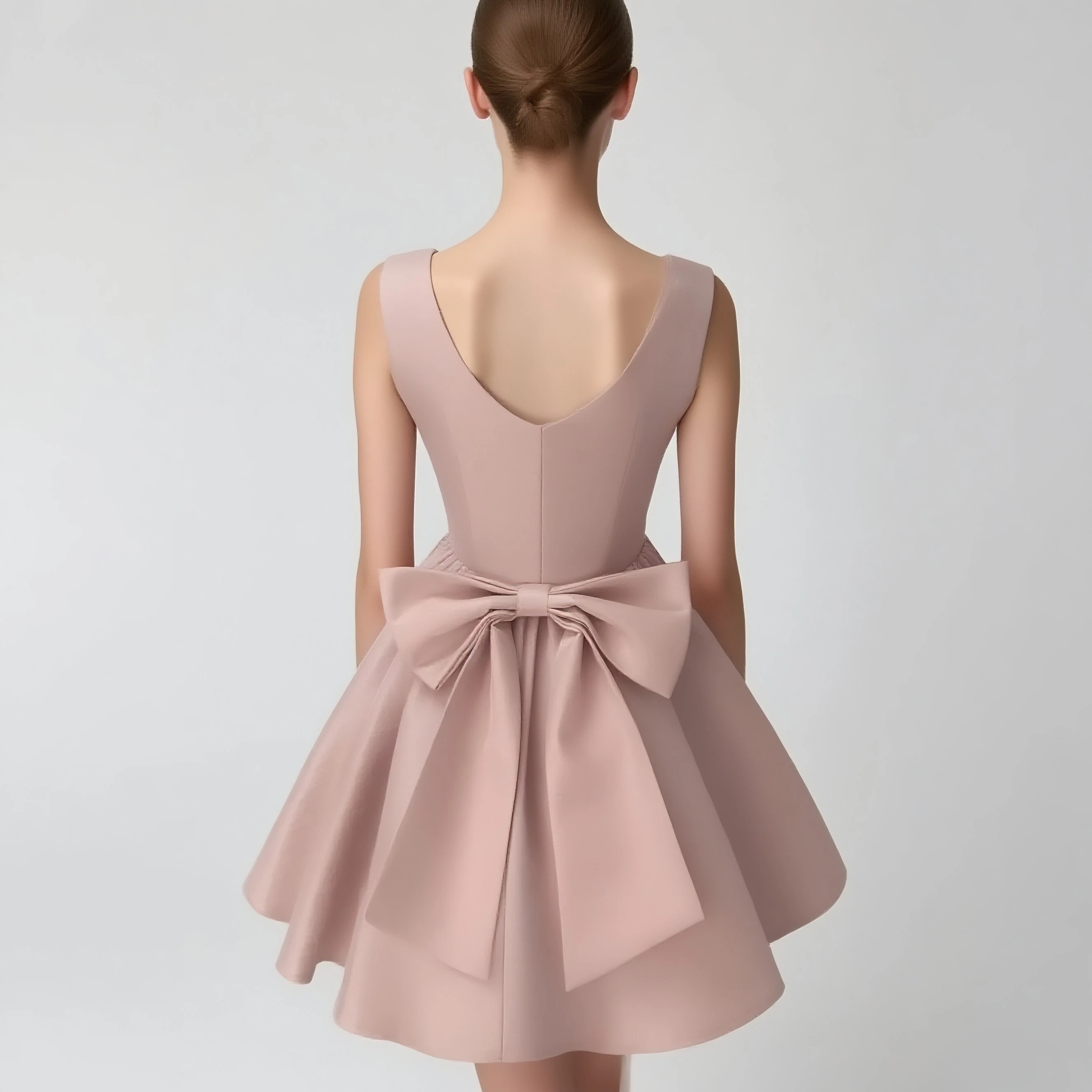 Custom Satin Women's Square Neck Bow-Decorated Flared Mini Dress