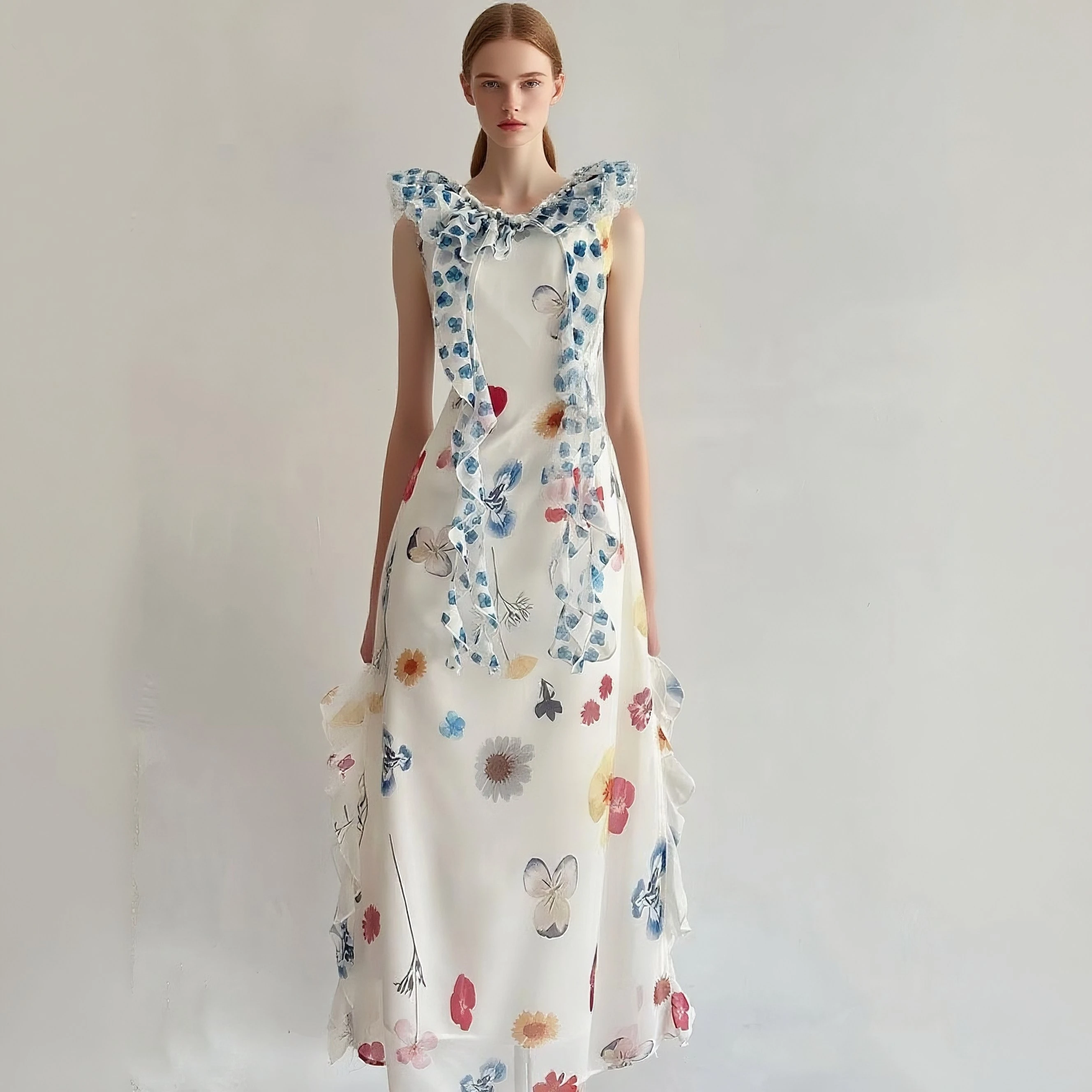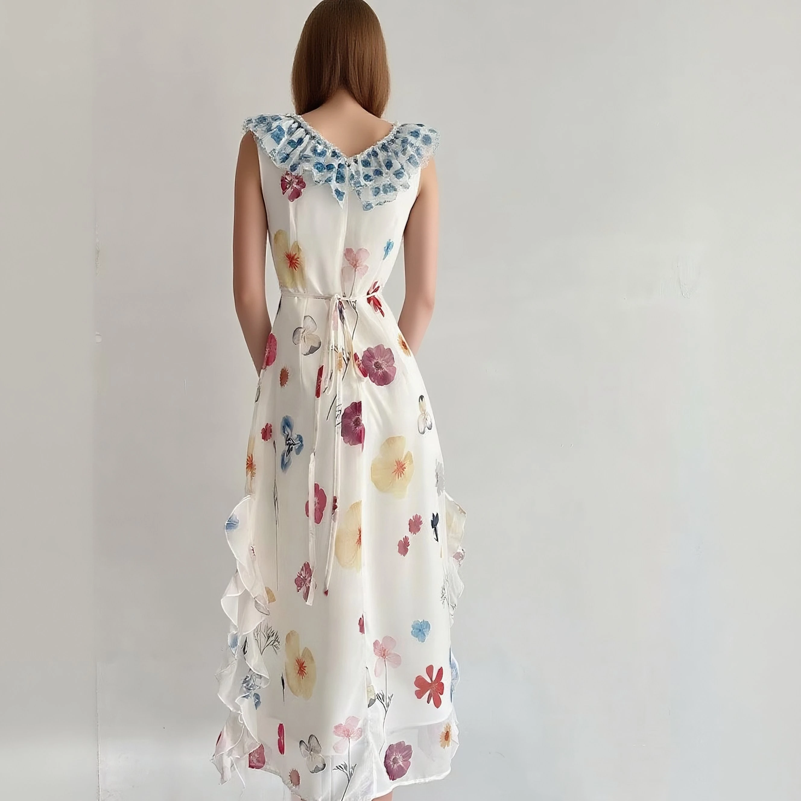 Summer Chiffon Dress, Ruffle Floral Print Maxi Dress, Elegant Fairy Party Dress