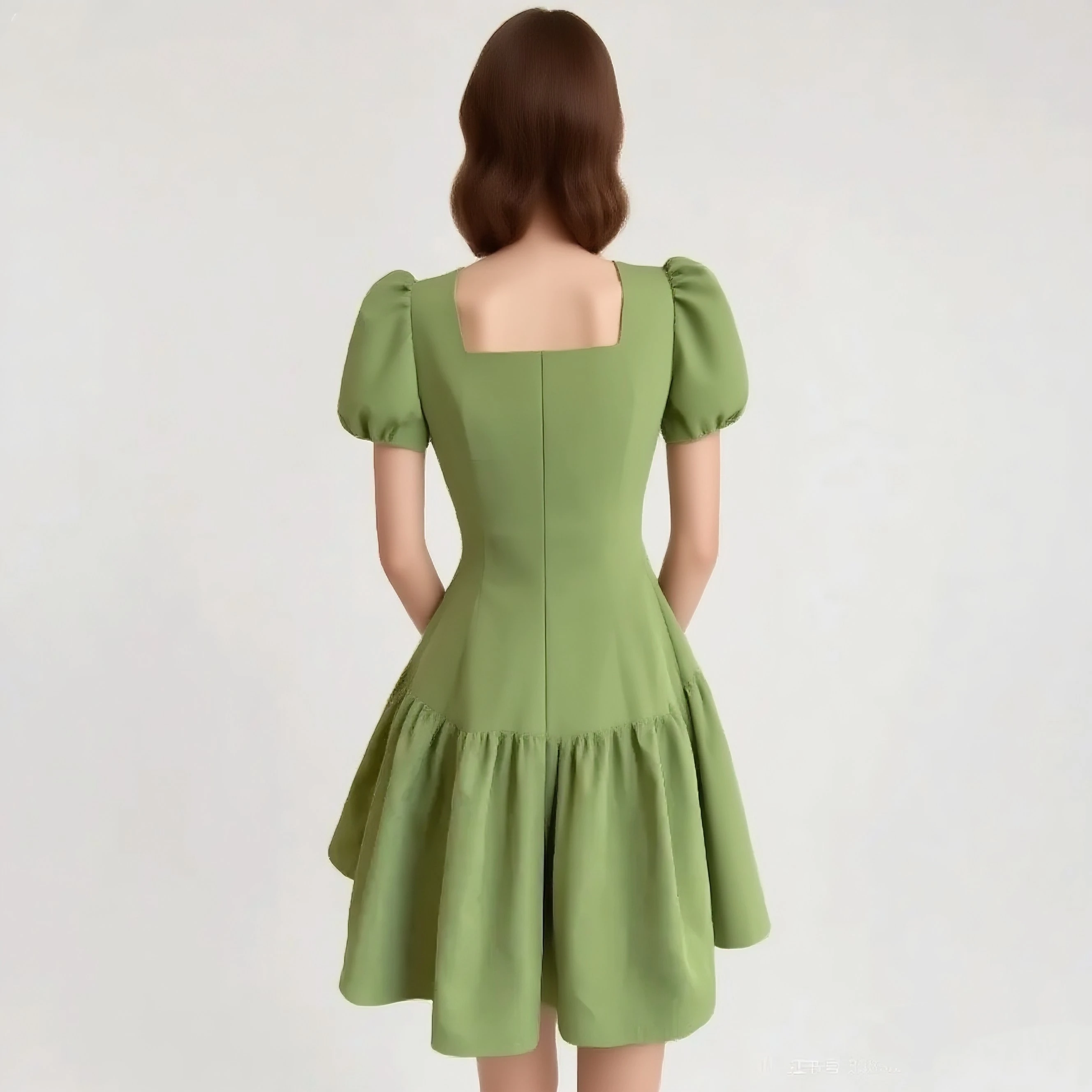 Clothing Manufacturer 100% Cotton Dress, Women's Square Neck Puff Sleeve Fit-and-Flare Mini Dress