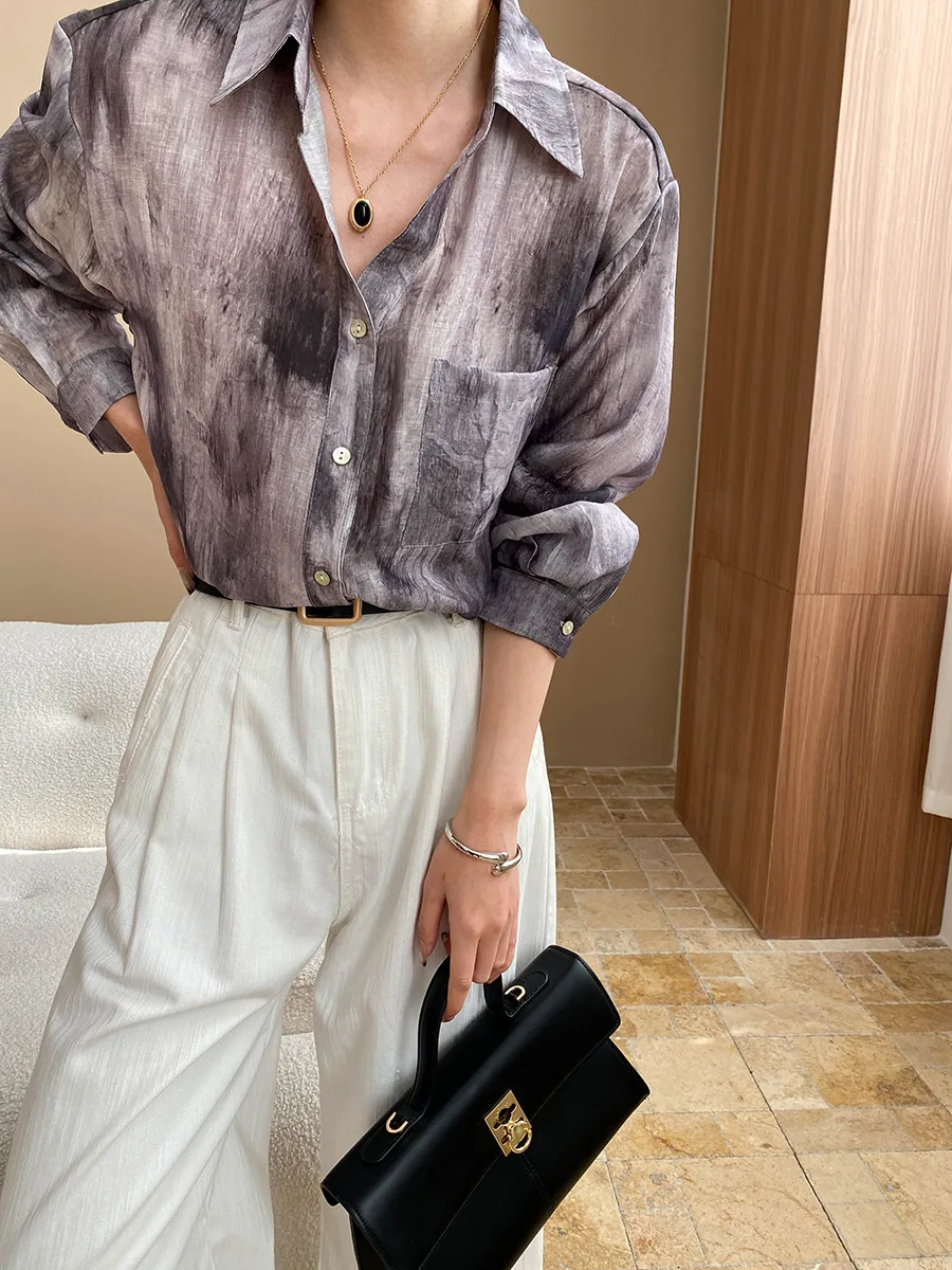 Custom Women's Tie-Dye Shirt Loose Fit Long-Sleeve Casual Top