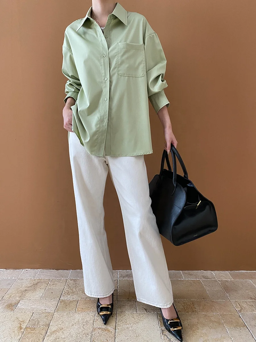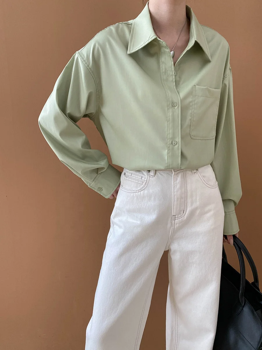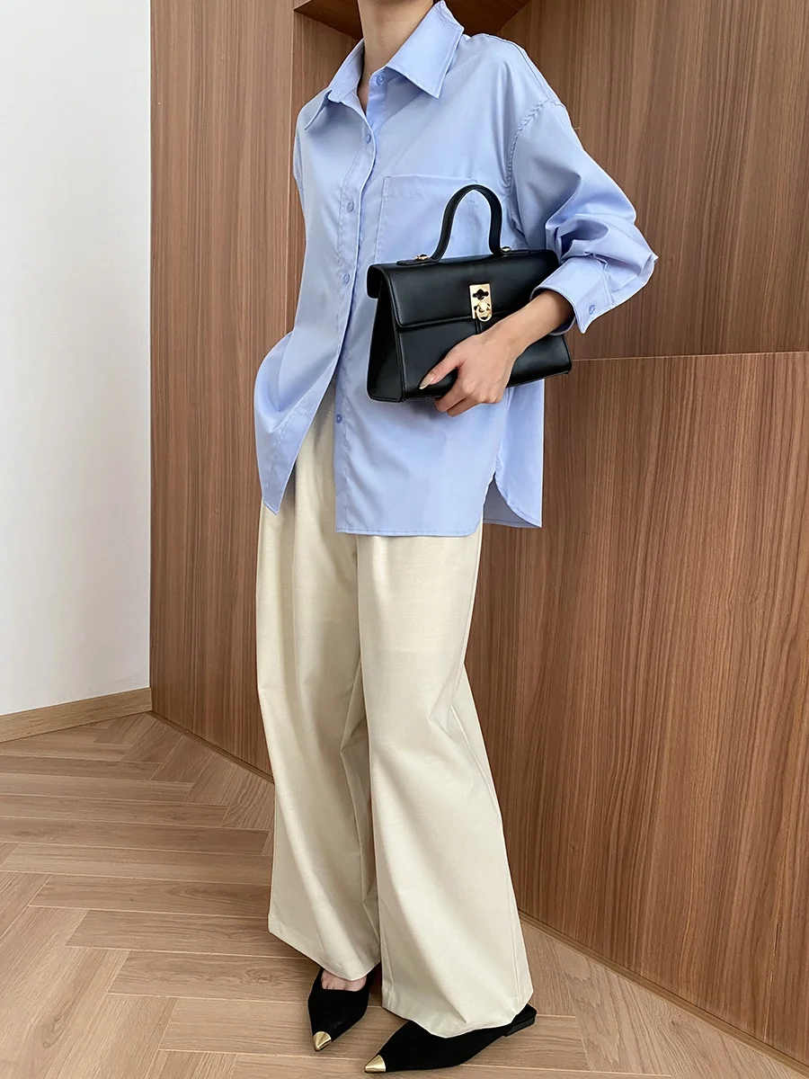 Custom Women's Oversized Blue Button-Down Shirt with Chest Pocket