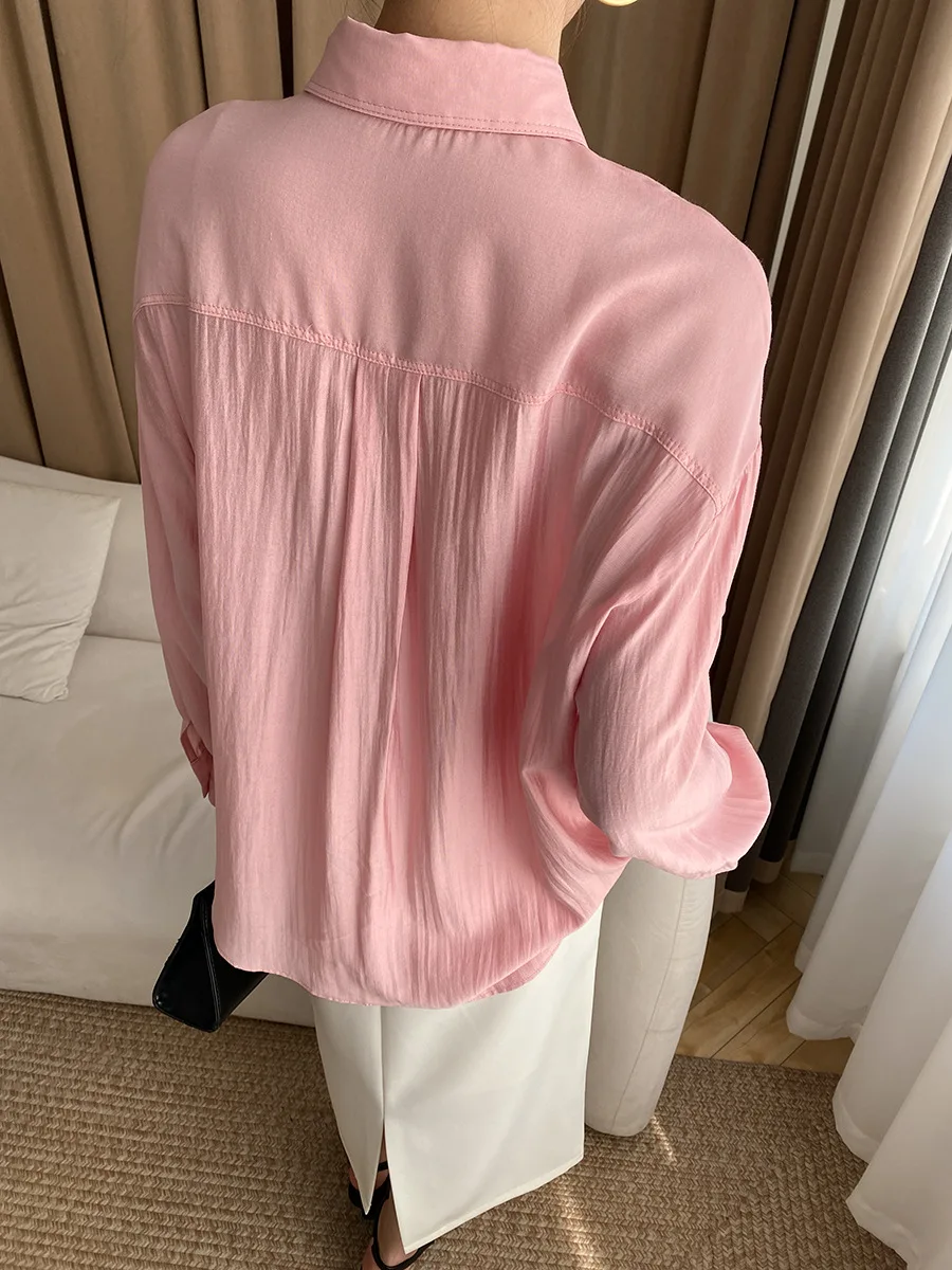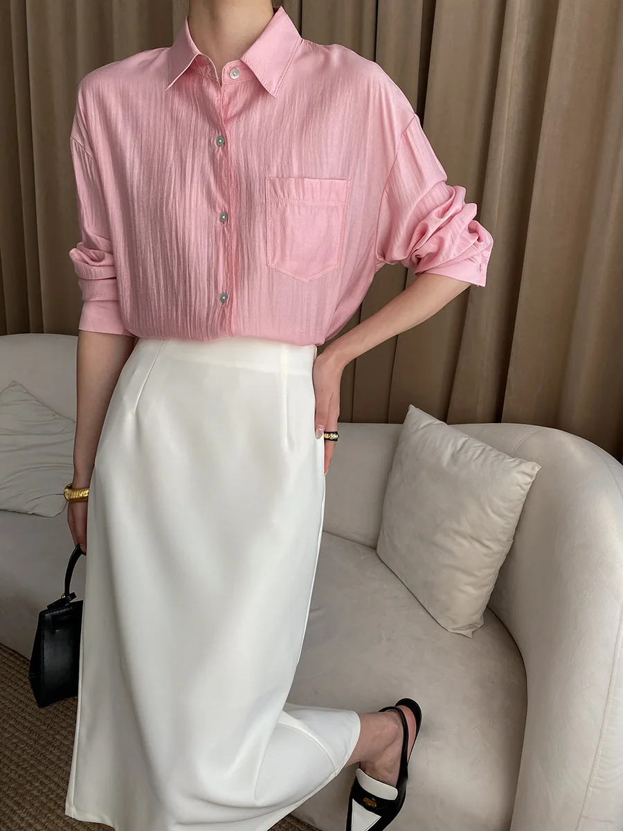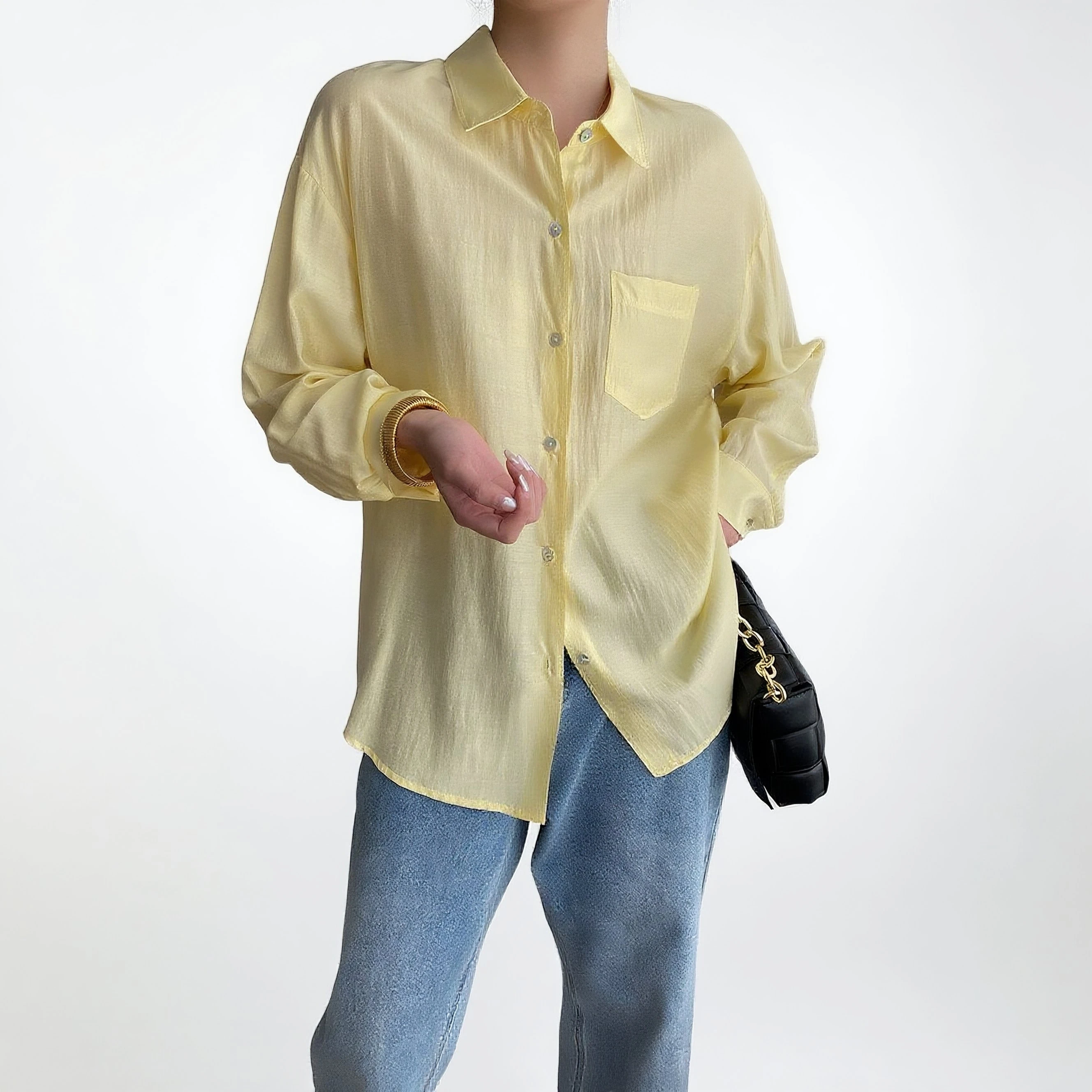 Custom Women's Light Yellow Linen Button-Down Shirt with Chest Pocket