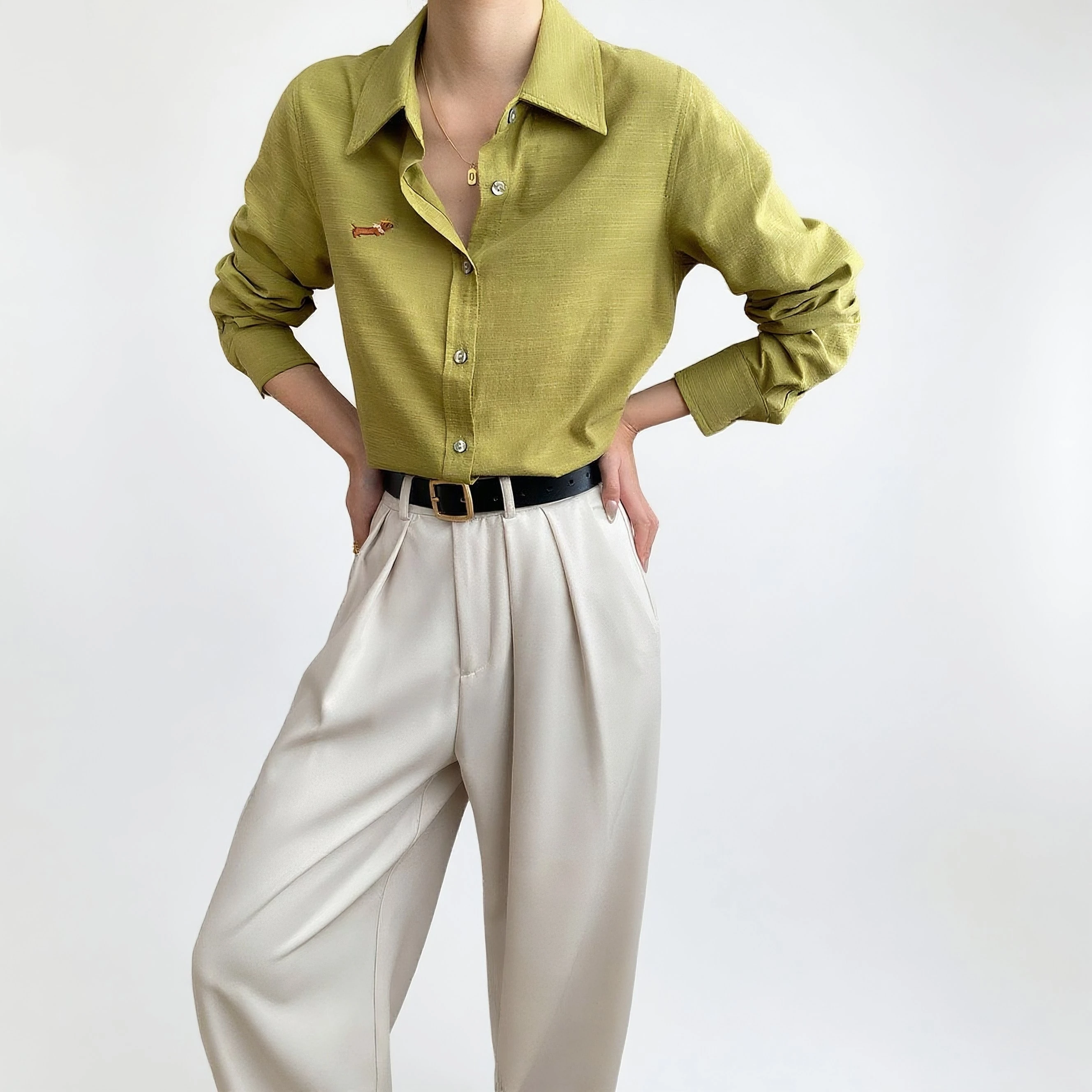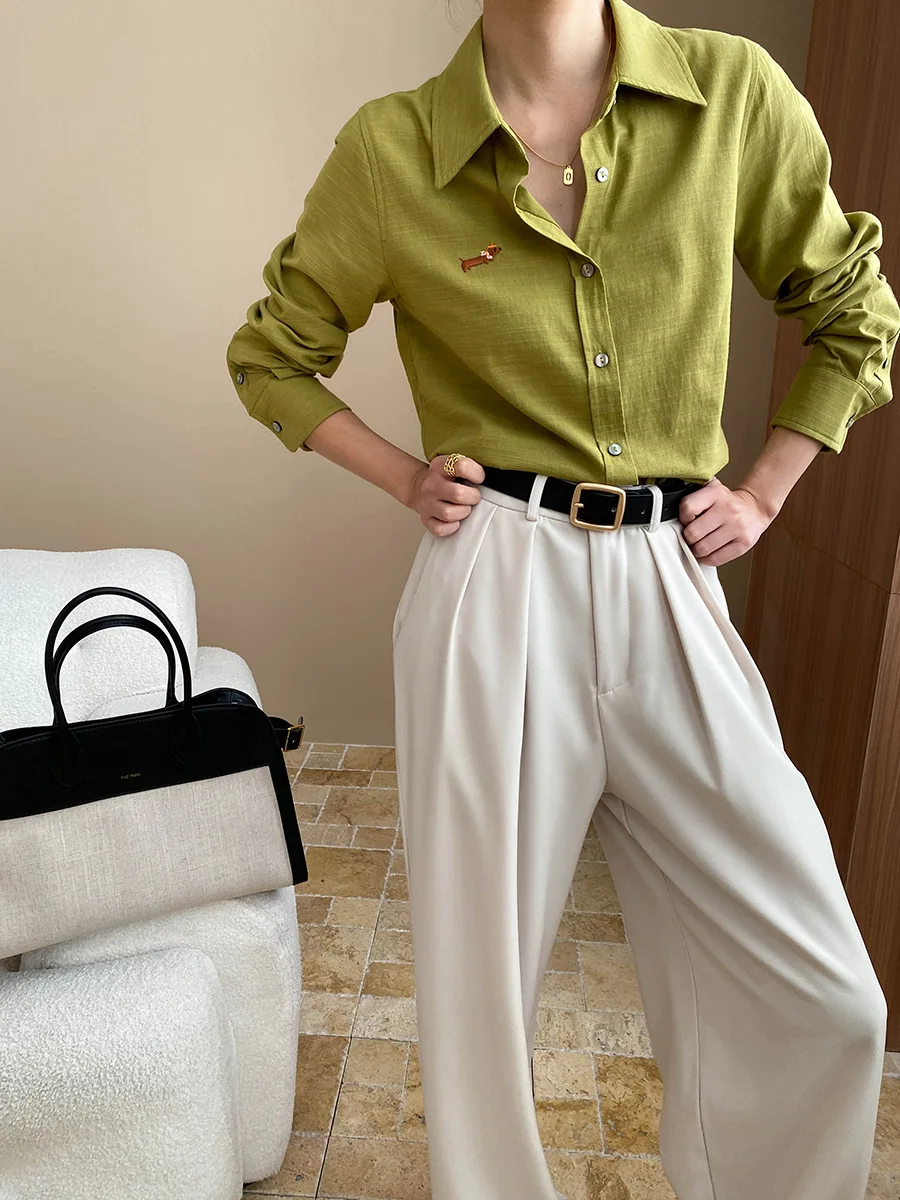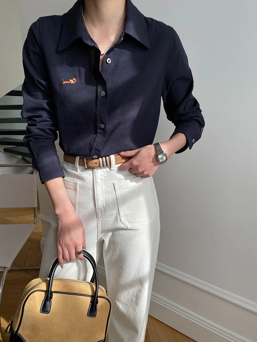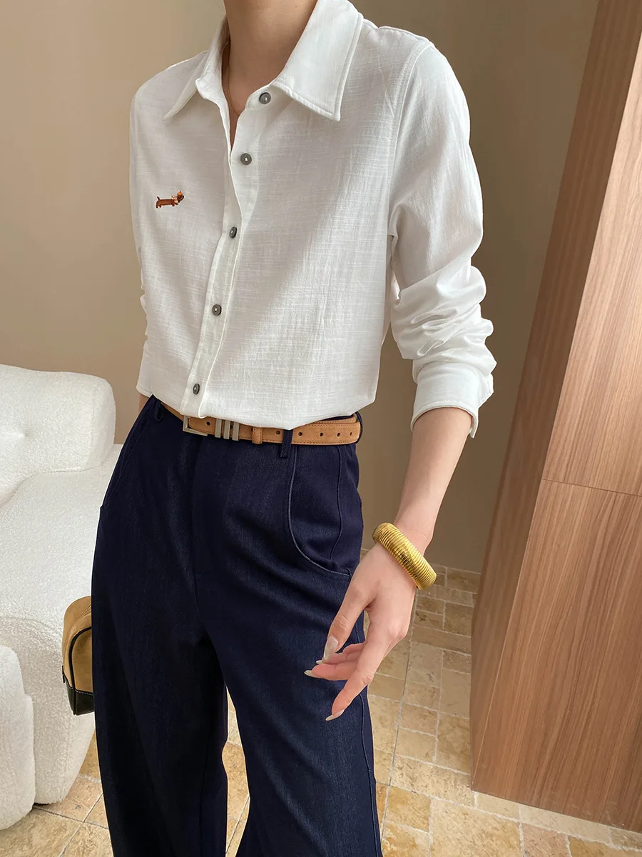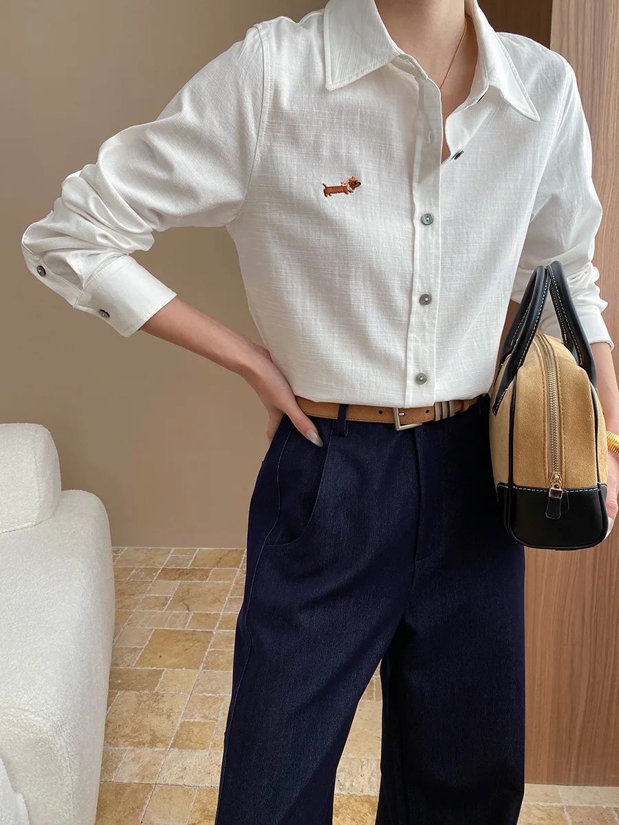 Manufacture Women's Long Sleeve Button-down Shirt with Embroidery