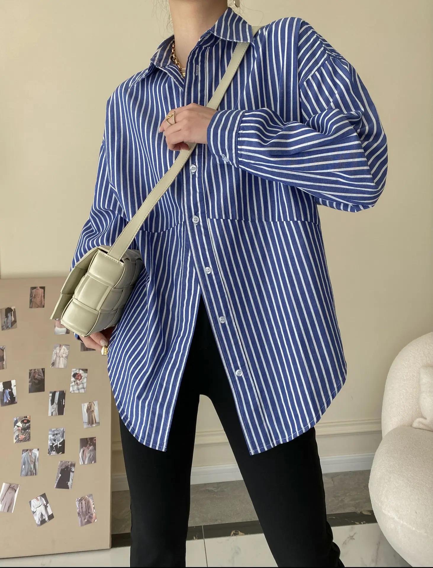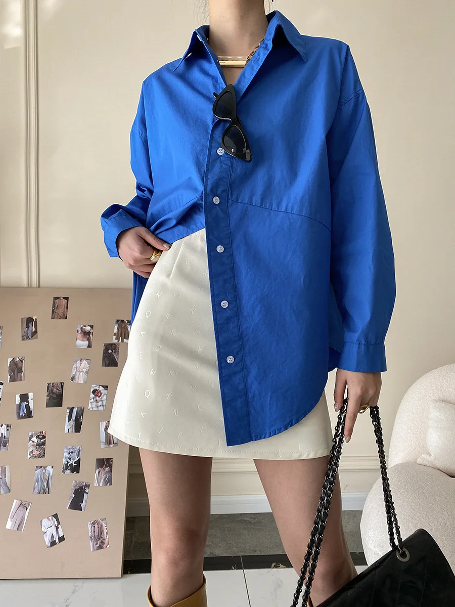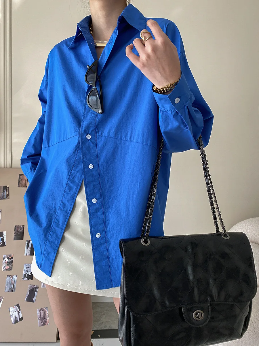 Custom Women'S Brigh Blue Long Sleeve Button-down Oversized 100% Cotton Shirt