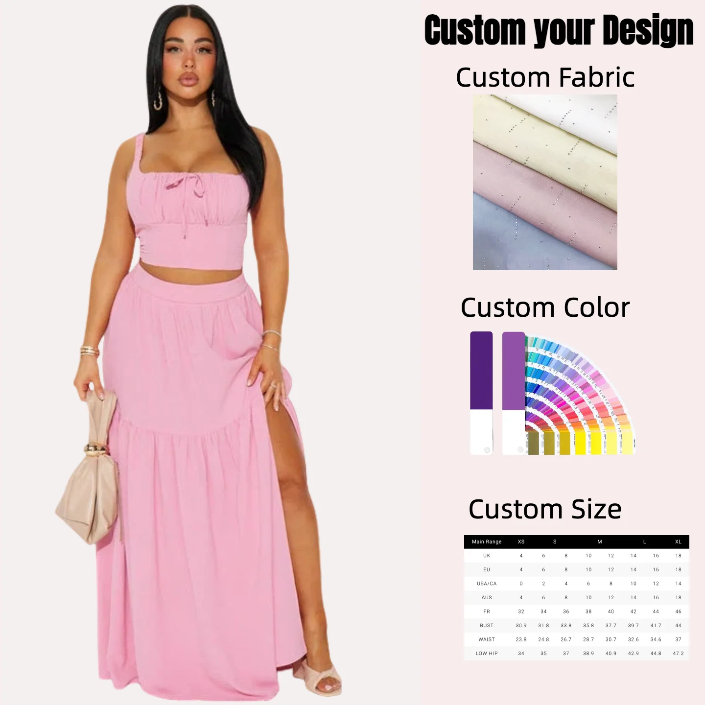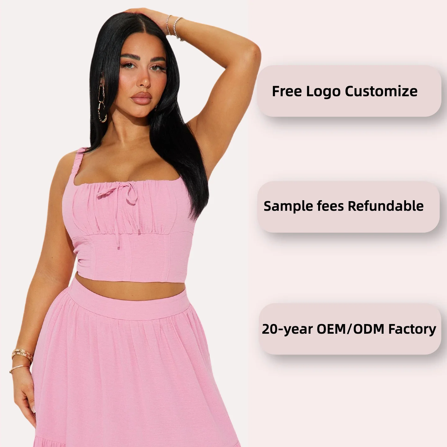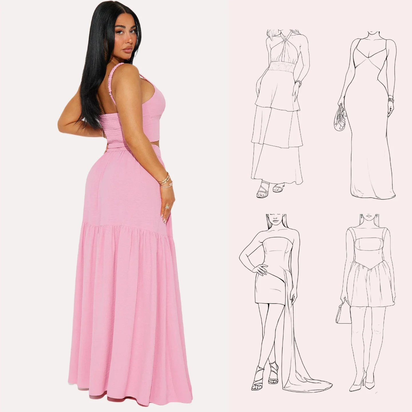 Women's Elegant Summer Dress Set Short Casual Two-Piece Front Split Detail Elastic Strap Smock Back Ladies' Elegant Summer