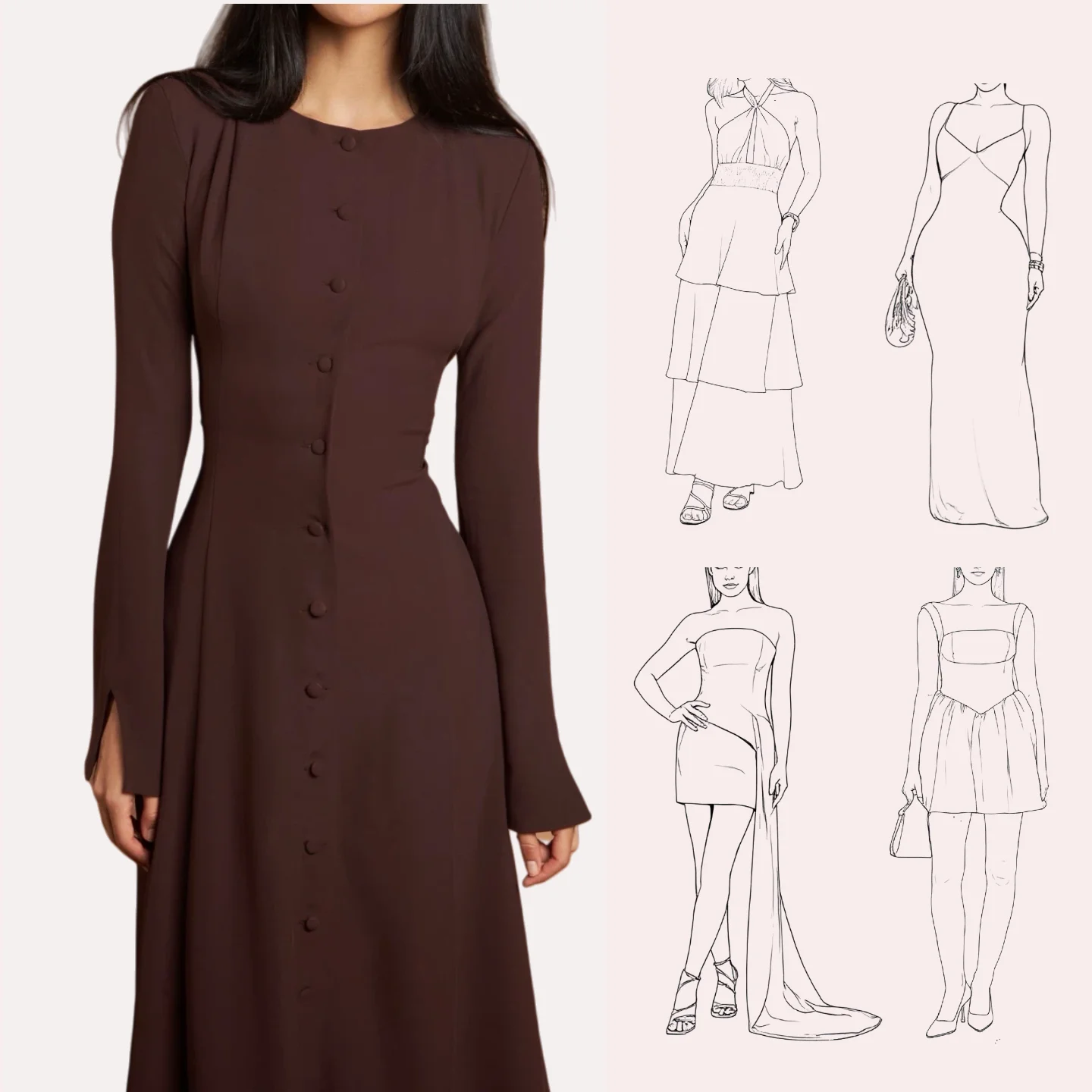 Fashion Round Neck Flare Sleeve Women Solid Casual Maxi Long Dress Elegant Female Tight Fitting Dress