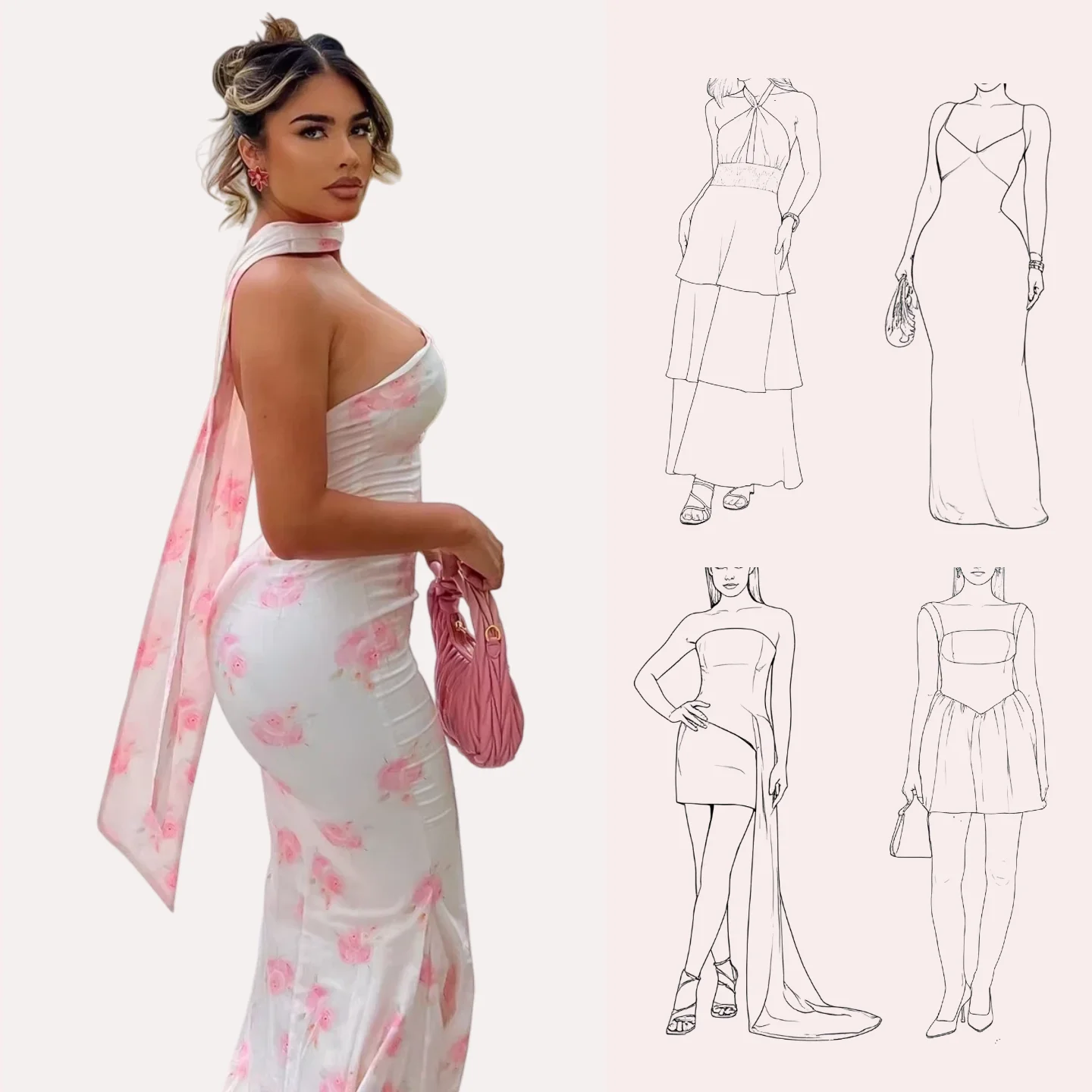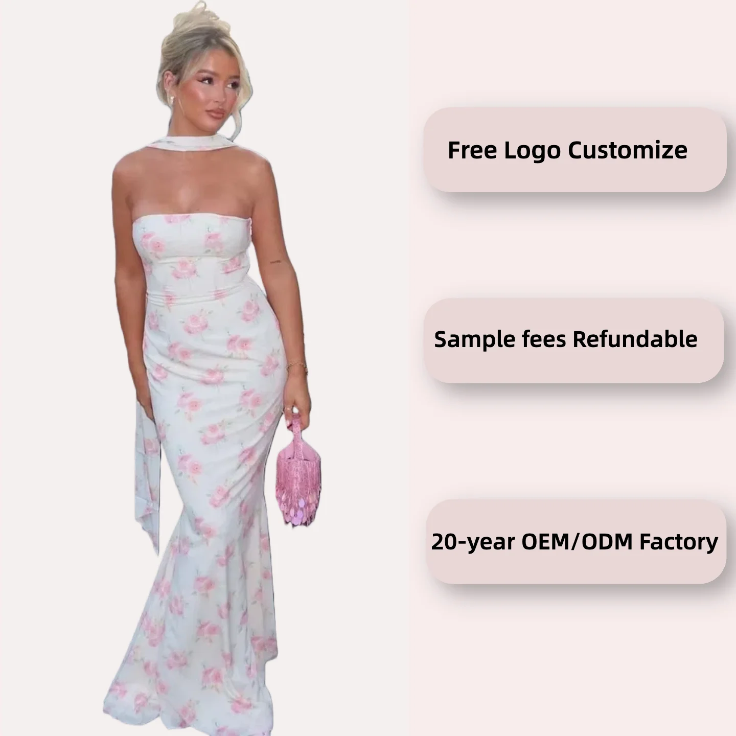 Floral Print Strapless Elegant Evening Women'S Dresses Summer Vacation Y2K Streetwear New Casual Clothes