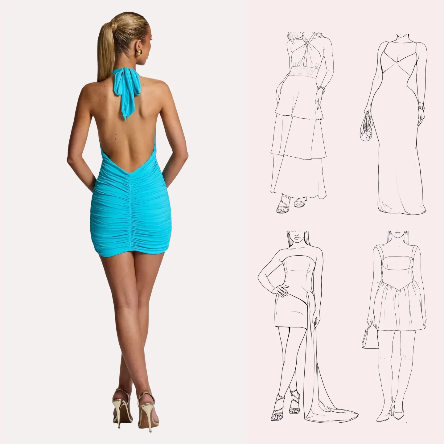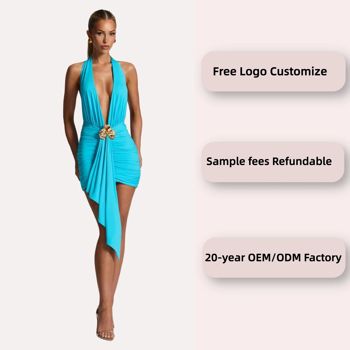 Ladies New Solid Color Sexy Deep V Neck Sleeveless Backless Halter Open Back Split Elegant Fashion Sexy Women Dress