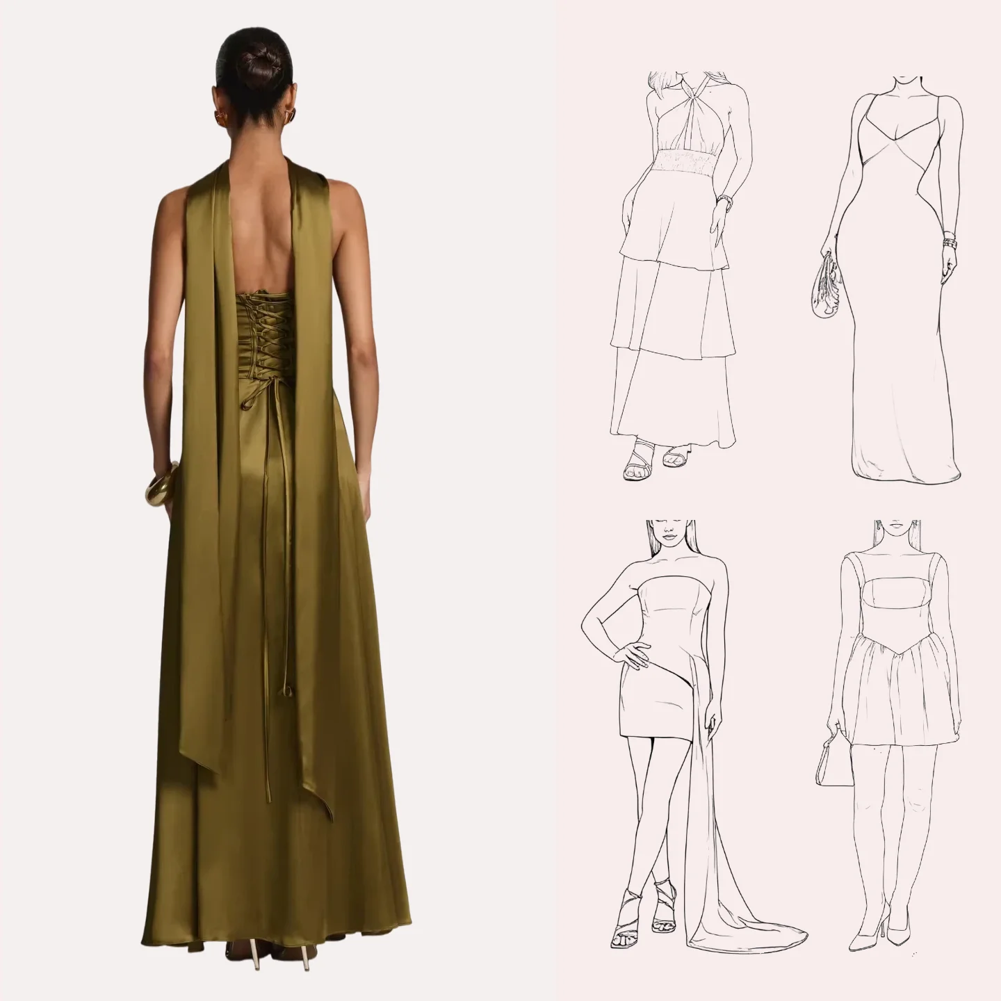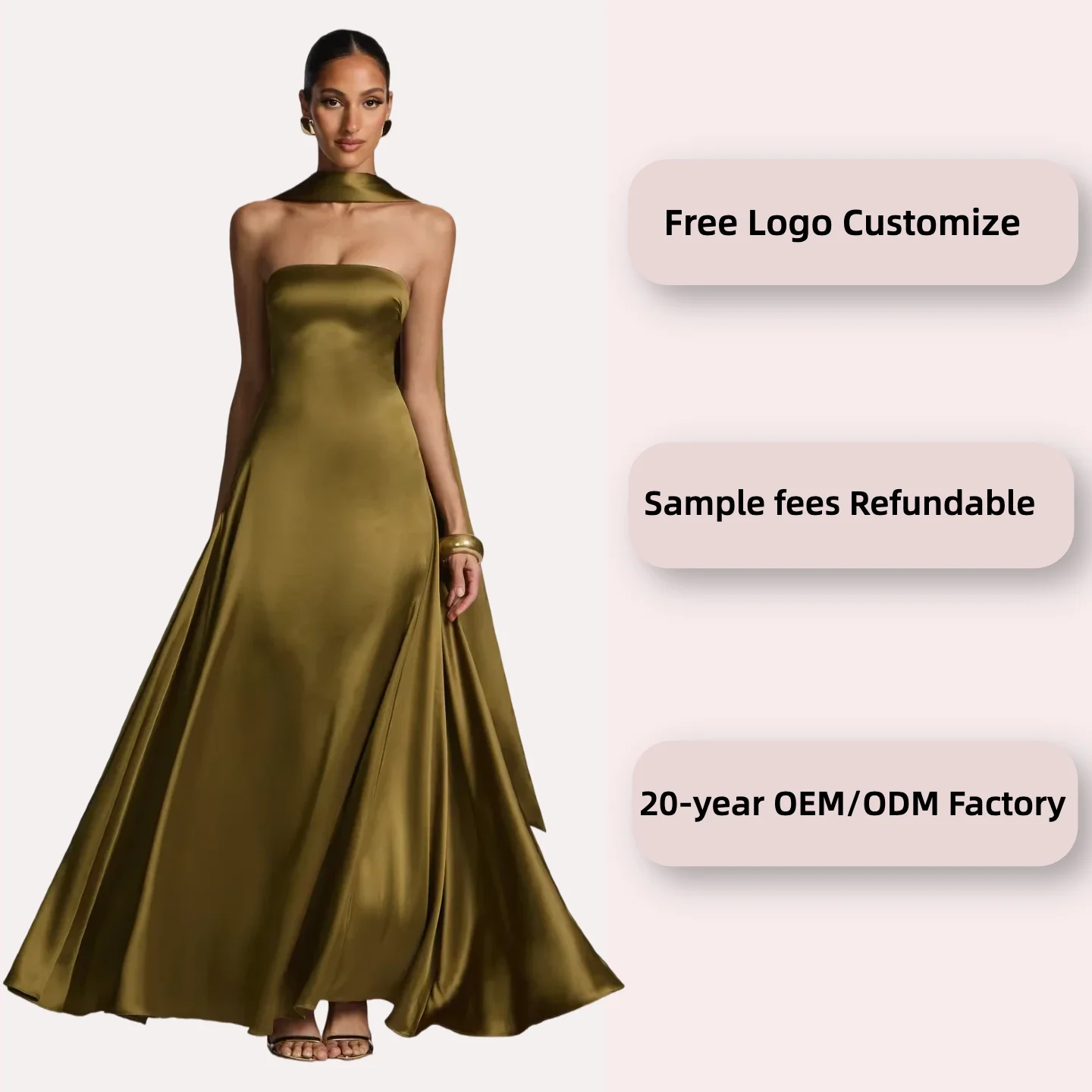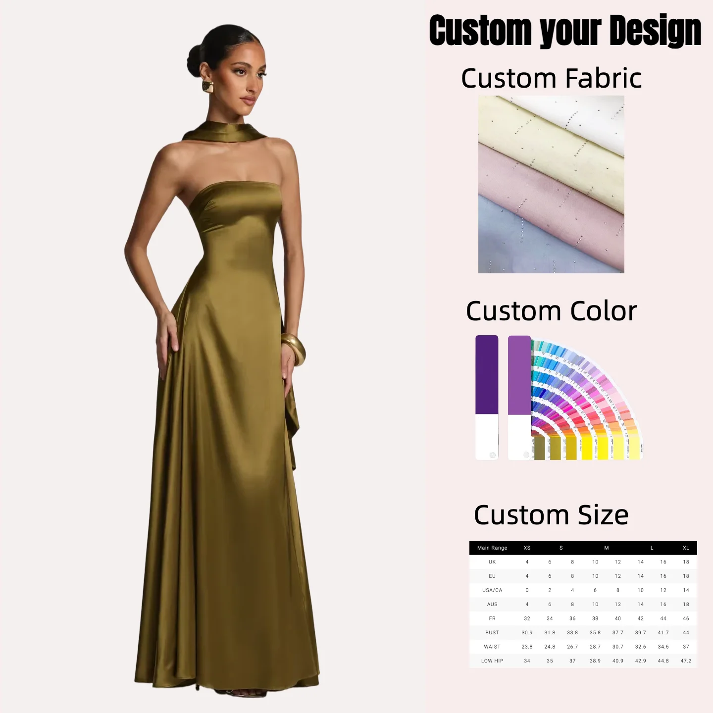 Summer Women's Skirt Custom Satin Low Cut Sexy Split Suspender Maxi Party Fashion Elegance Dresses