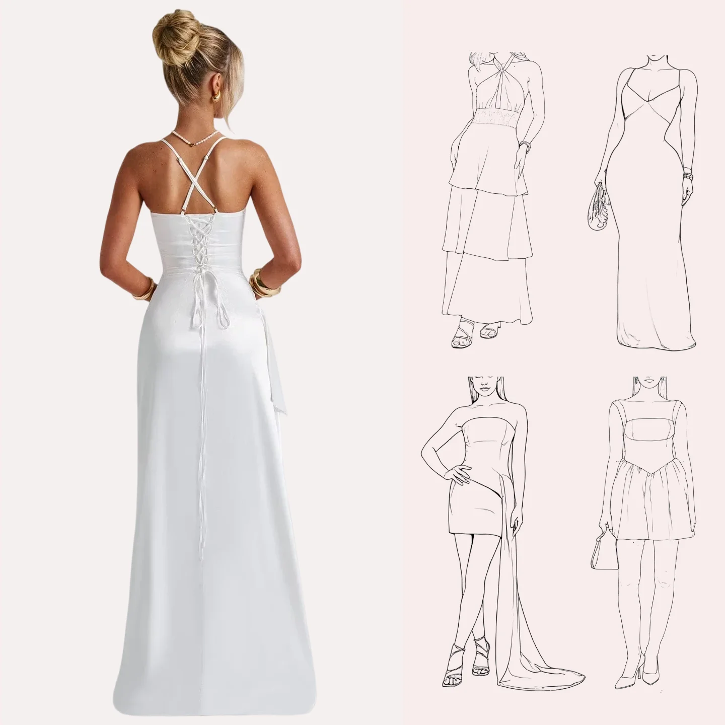 Women's Summer New Elegant Evening Dress Solid Color Long Strap Dress Casual Simple Style for Women