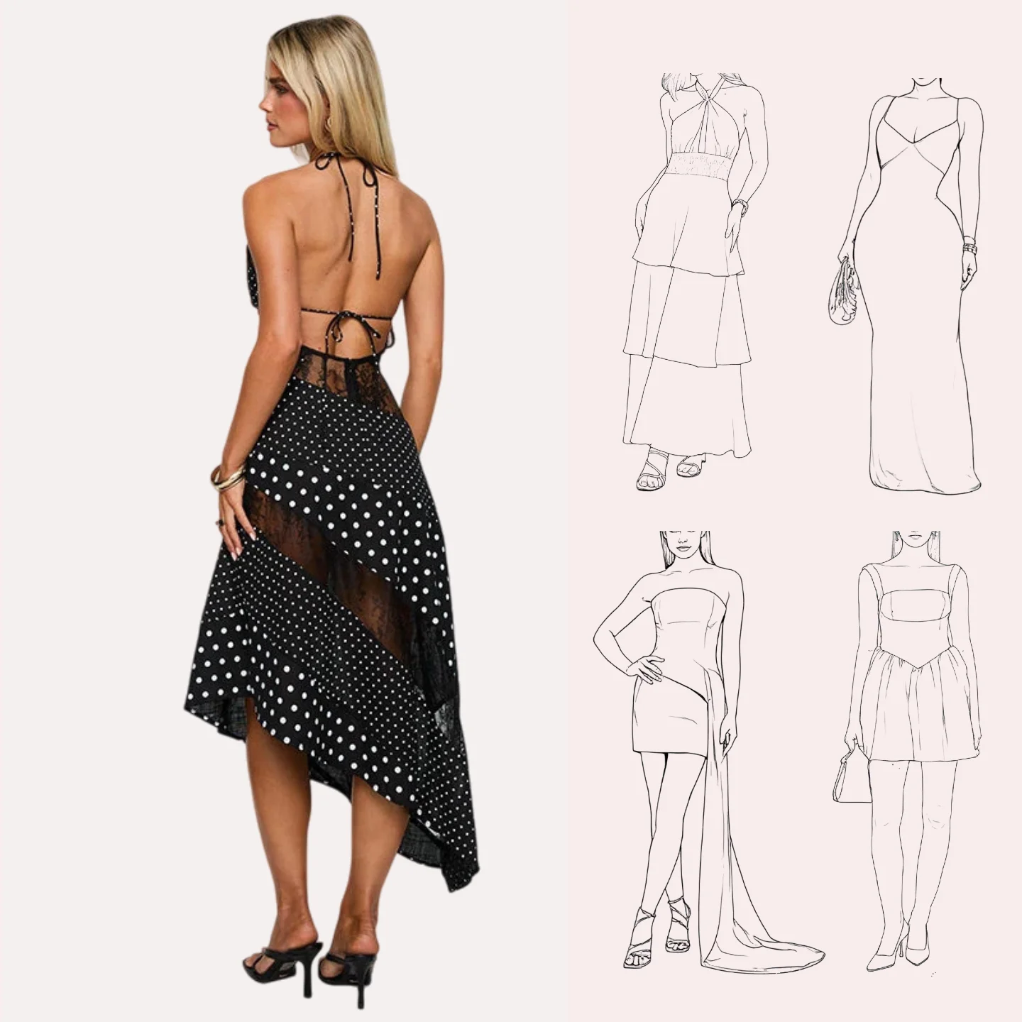 Elegant Women's Casual Asymmetry Dress with Transparent Spaghetti Strap Tie Back Detail Sexy Club Style Woven Fabric
