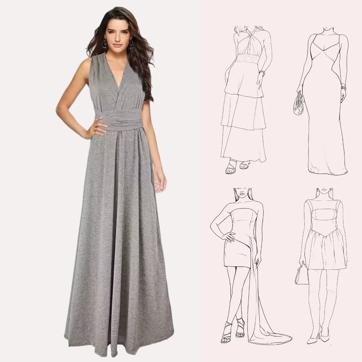 Manufactory Direct Summer Maxi Dress Sleeveless Natural Waistline Long Luxury Gowns V-neck Formal Women Evening Dress