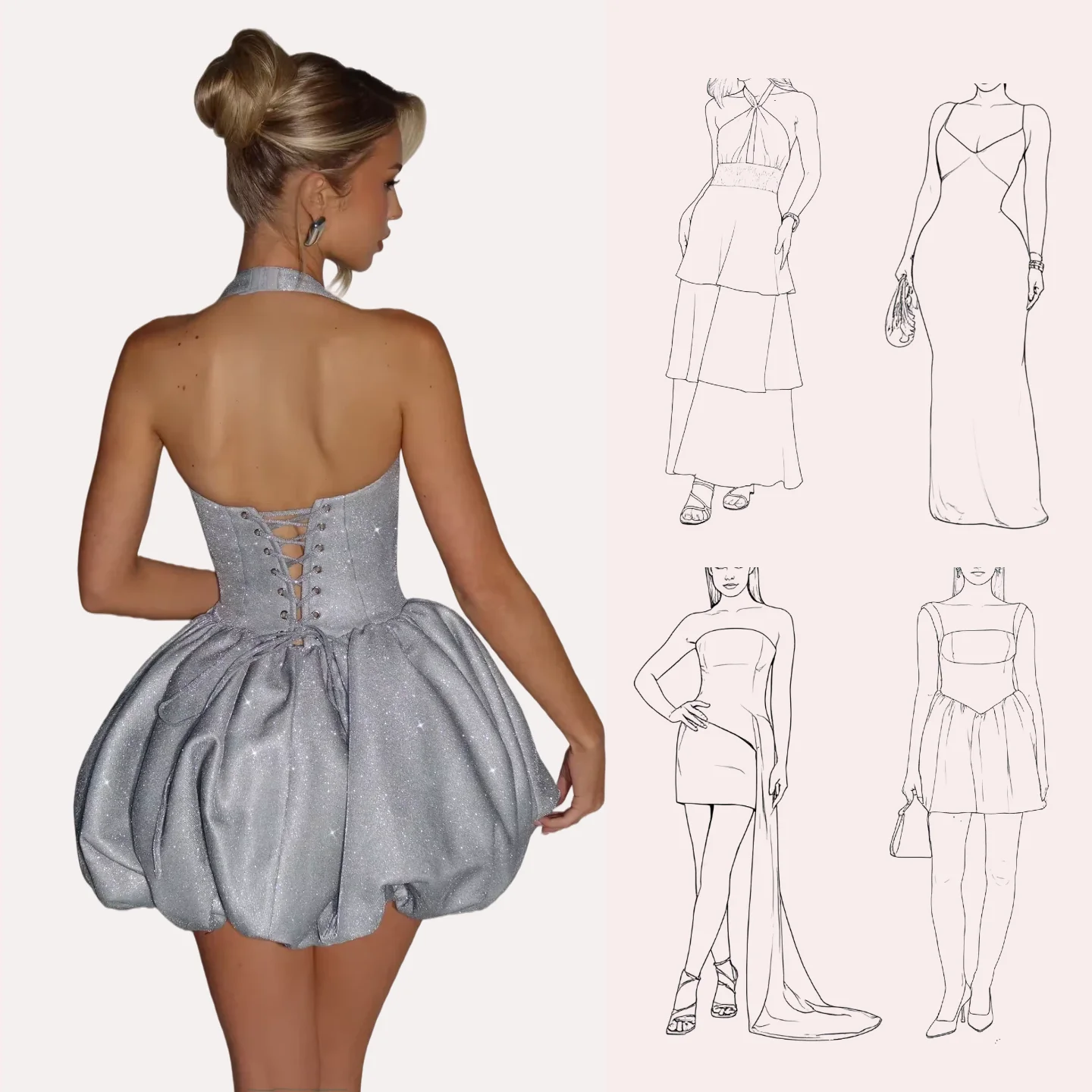 2026 French Fashionable Sexy Halter Back Lace up Slim Mini Dress Puffed Dress for Women