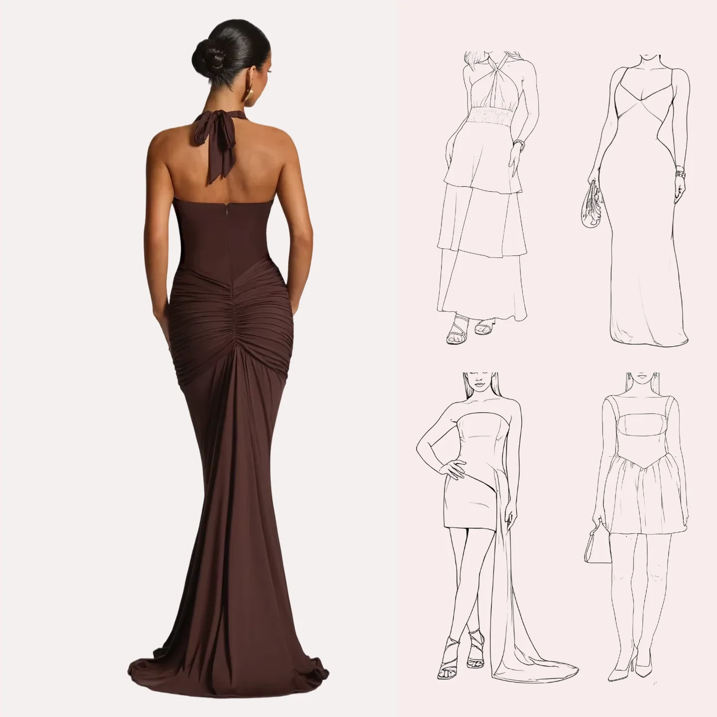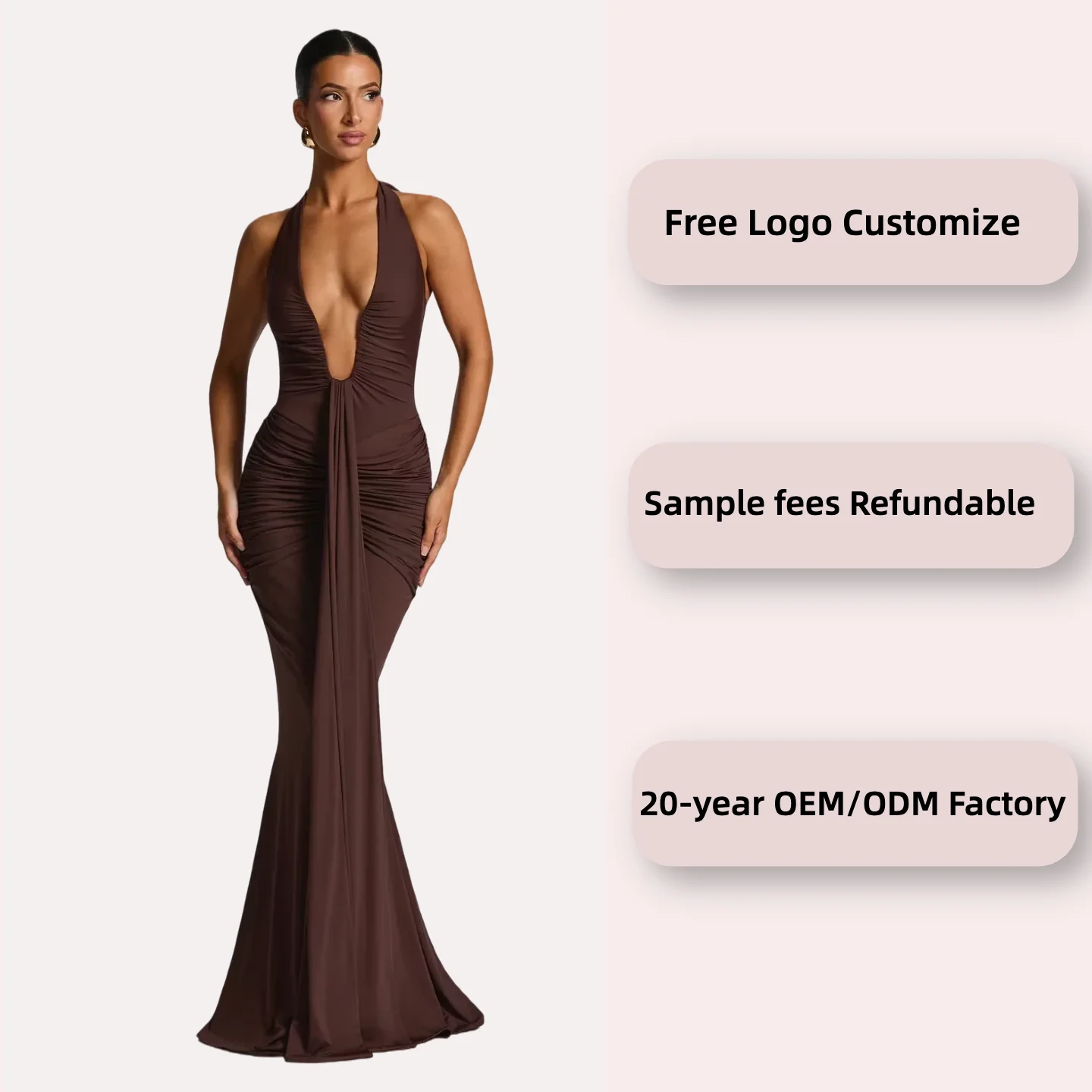 Women's Eco-Friendly Washable V-Neck Pleated Patchwork Solid Lace-up Halter Sleeveless Party Midnight Clubwear Floor-Length