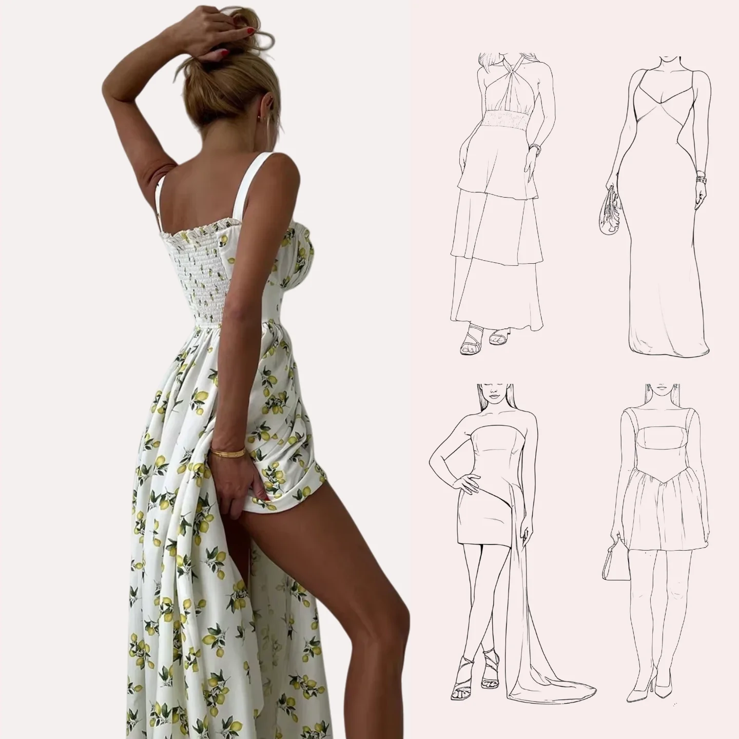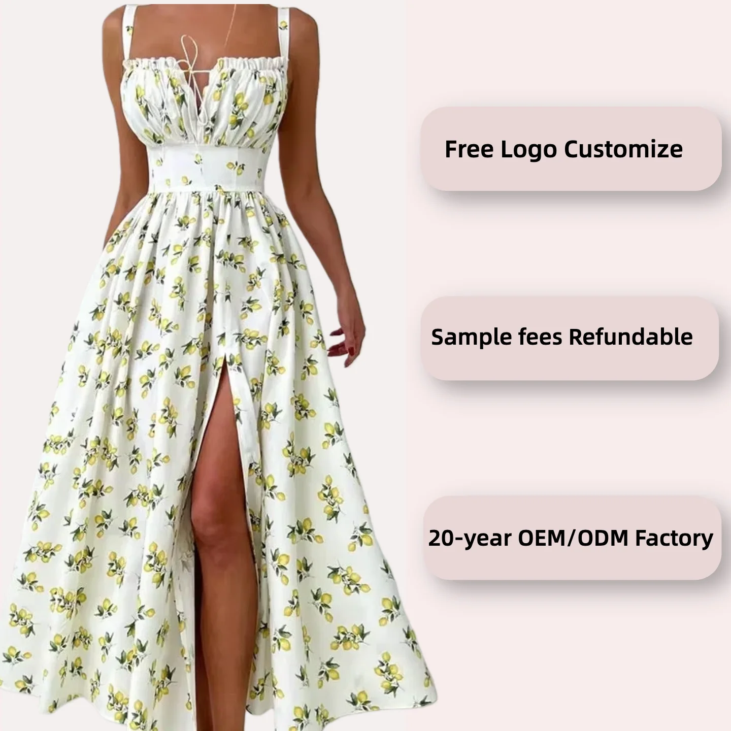 New Summer Floral Print Floor-Length Slip Skirt Spaghetti Strap Low Collar Lace-up High Waist Split Casual Plain Dyed