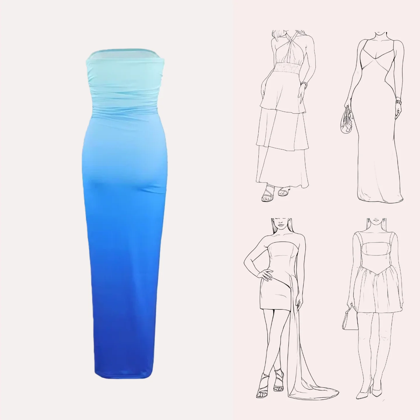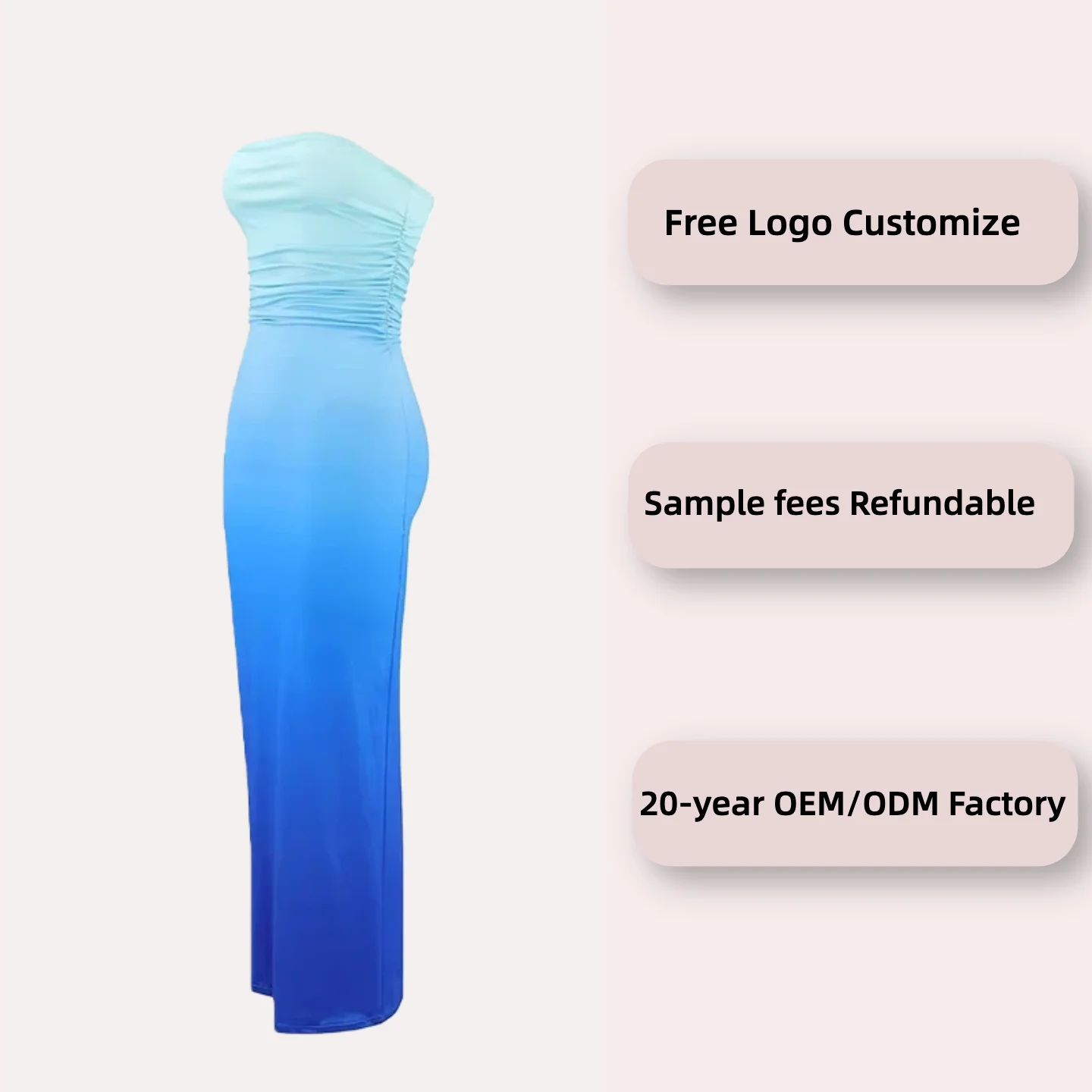 Wholesale Fashionable Strapless Long Gown with Bodycon Style and Open Back Detail for Cocktail Party Night Out Wear