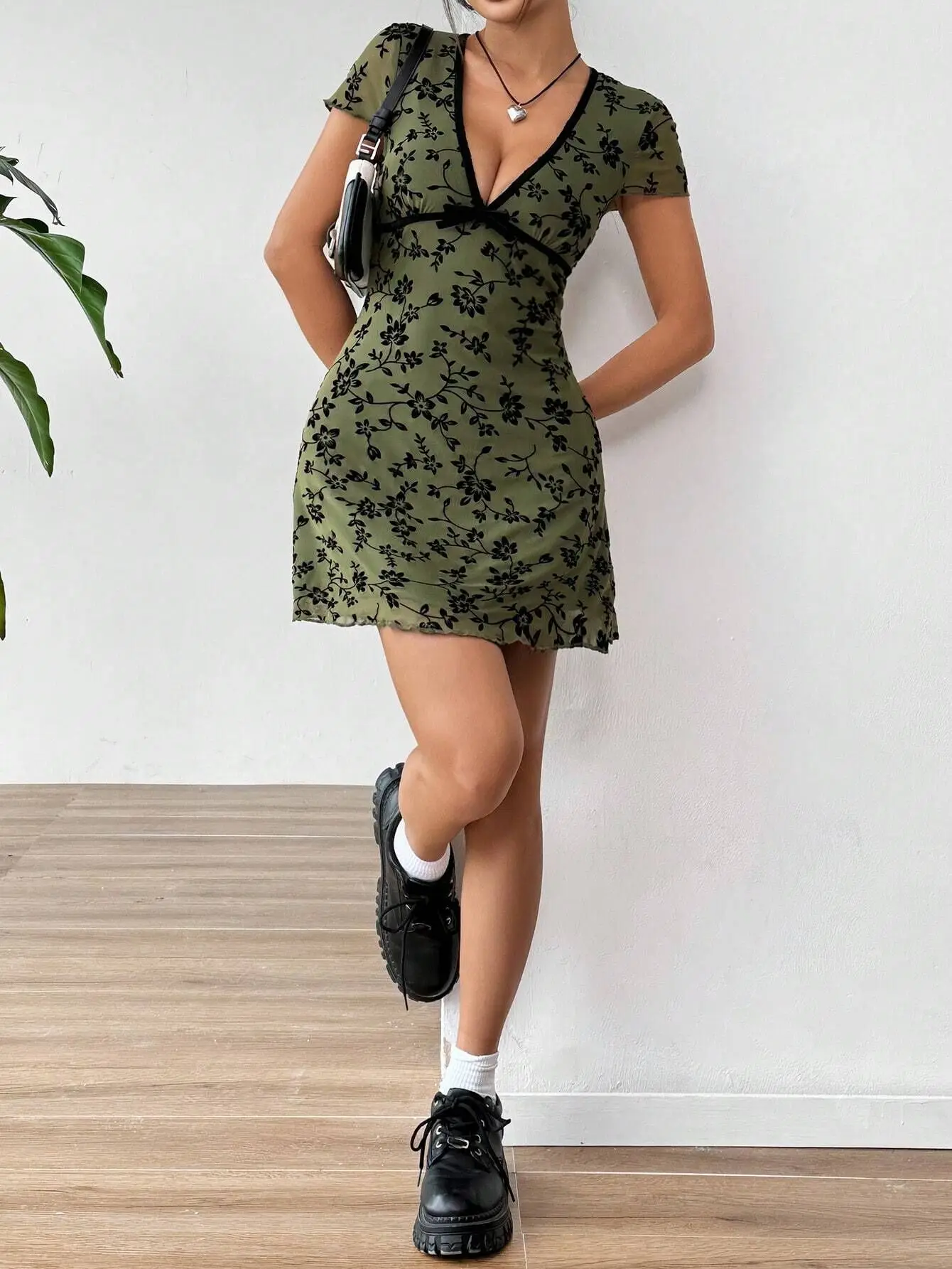 Casual Fashion Dresses for Women Ladies A-line Dress Beach Vestidos Bohemian Style Spring Bell Sleeves V-neck Elegant