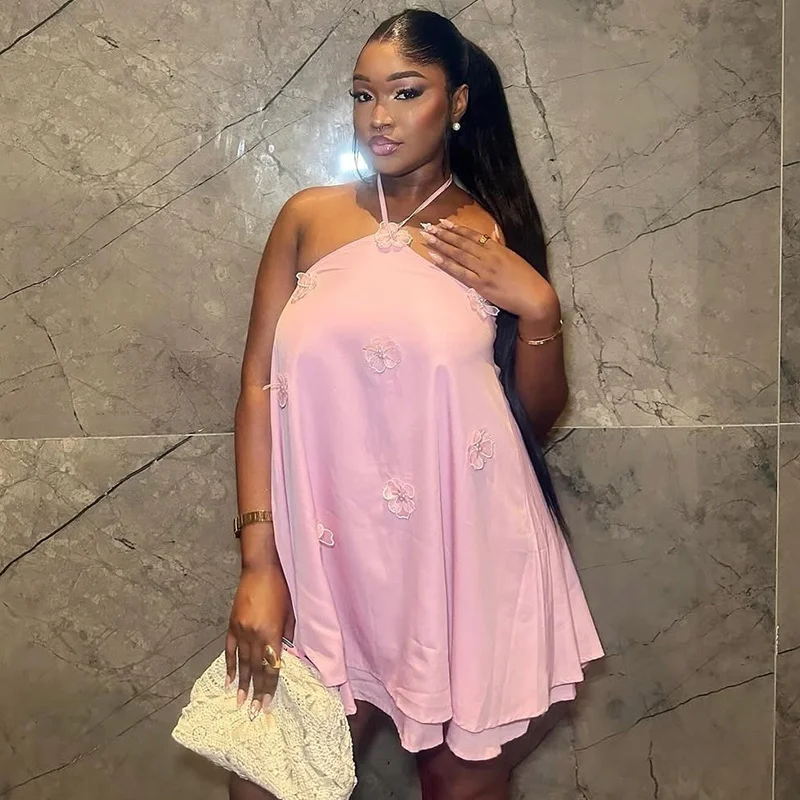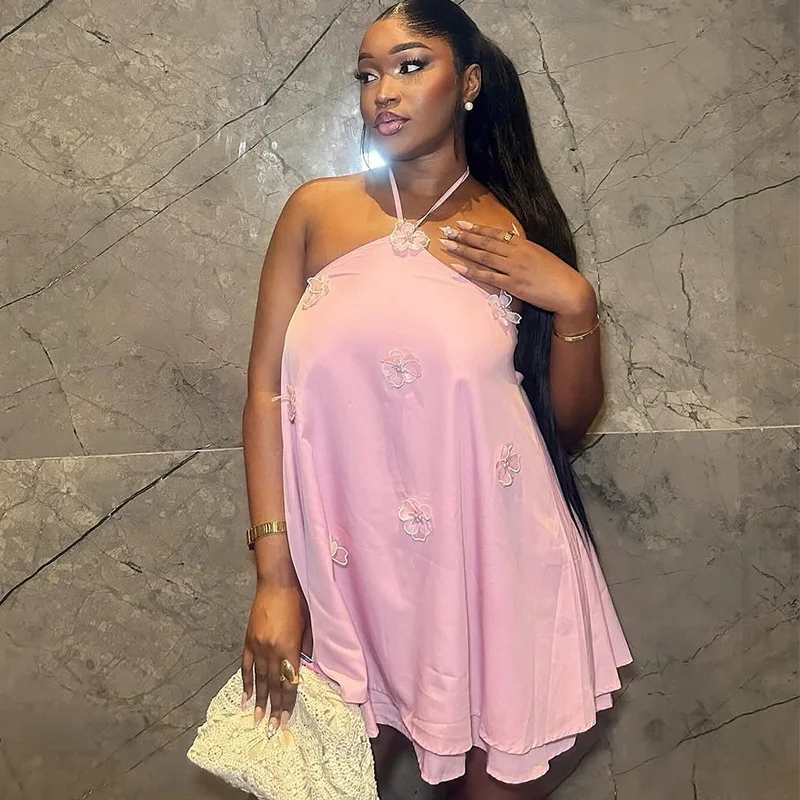 Women's 3D Embroidered Chiffon Mini Skirt Casual Print with Chiffon Lining Sexy Summer Dress Style