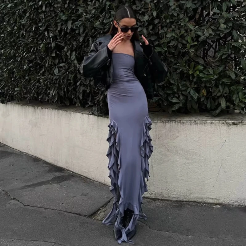 2026 Summer European American Women's Solid Color Sleeveless Strapless Dresses Sexy and Hot Lace Casual Night Party Dress