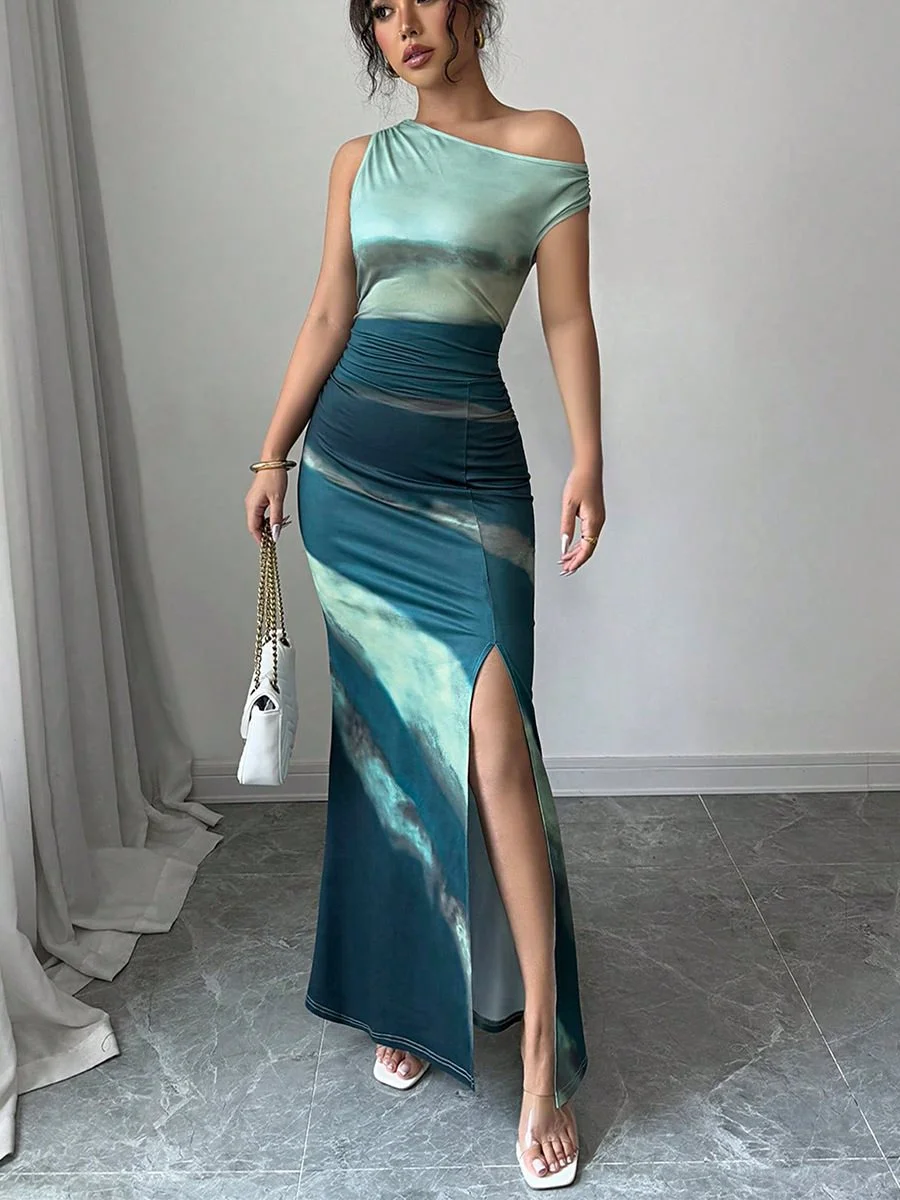 Wish Foreign Trade Women's 2026 Summer New European and American Contrast Color Slim Fit Dress Slant Shoulder Dress