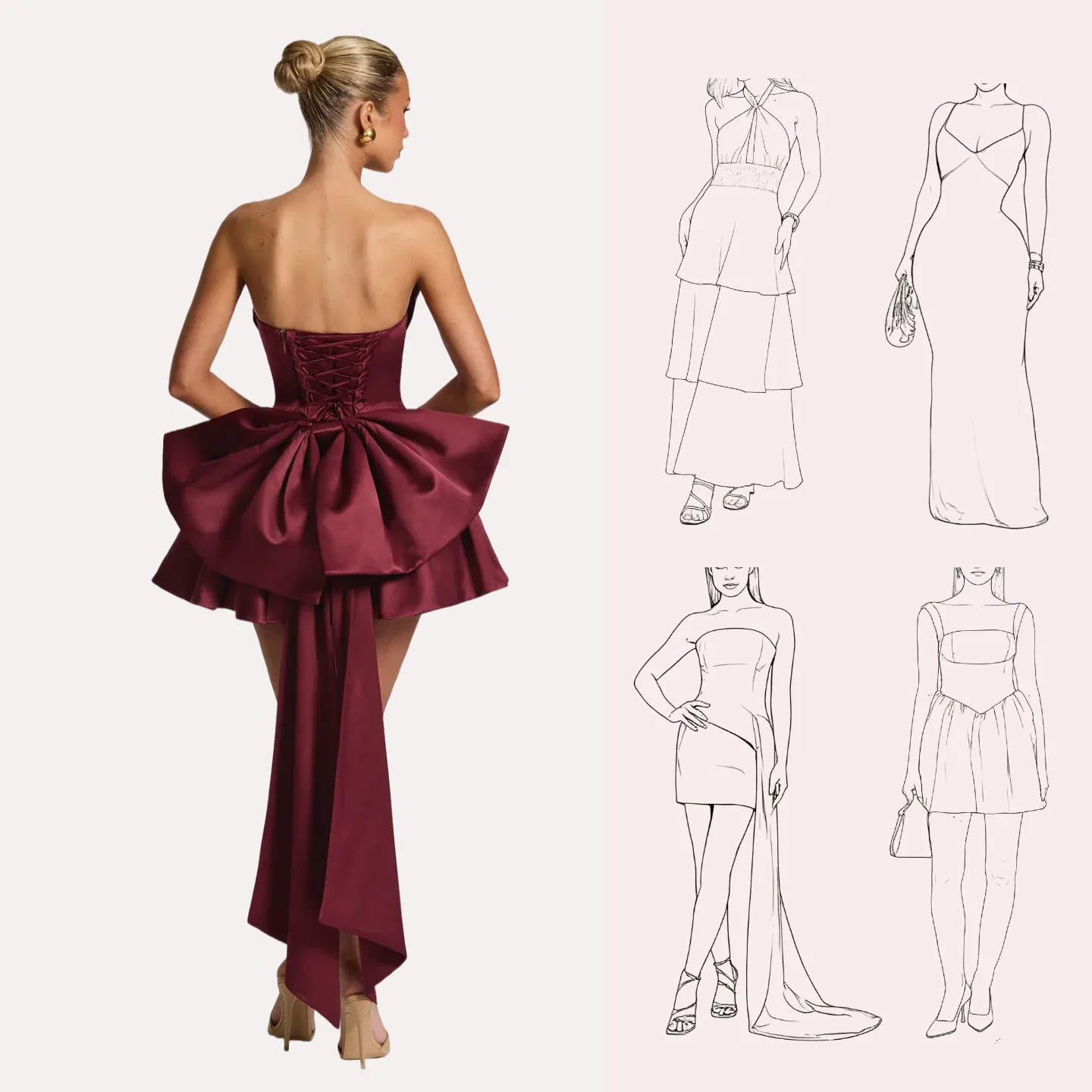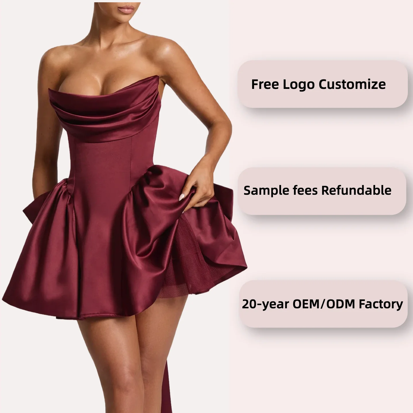 American Style Ivory White Elegant Evening Dress for Women Short Strapless Light Wedding Dress