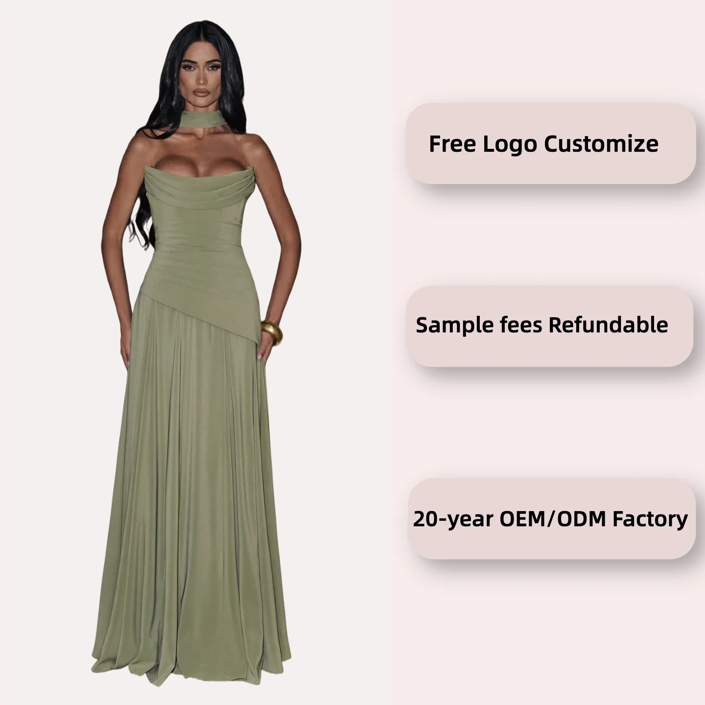 ZYHT 73902 Dark Green Blue Long Sleeve Simple Elegant Evening Dress Customize High End Women Clothing Manufacturer
