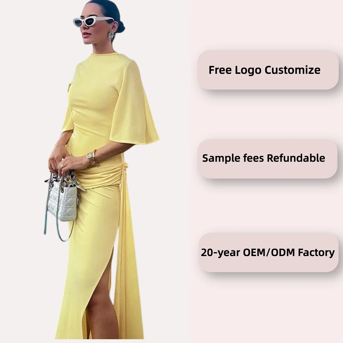 2026 Autumn New Women's Fashion Yellow Temperament Backless Layered Decorative Slit Long Dress