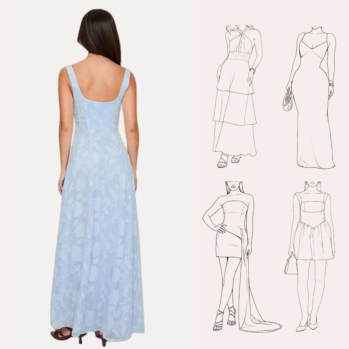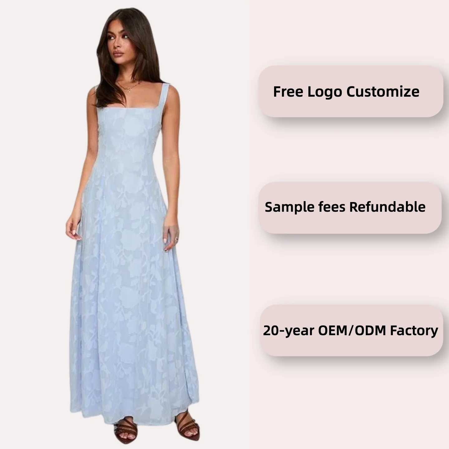 Elegant Women's Summer Vacation Maxi Dress Square Neckline Fully Lined Chiffon with Back Hollow Out Woven Weave