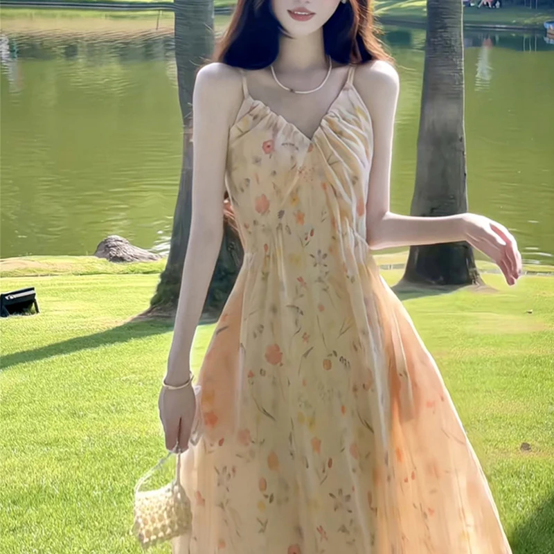 2026 Ladies Casual Printed Polka Dots Dress Hot Selling Stretch Loose Neck Sleeveless Pleated Cake Dress Autumn Season Low MOQ