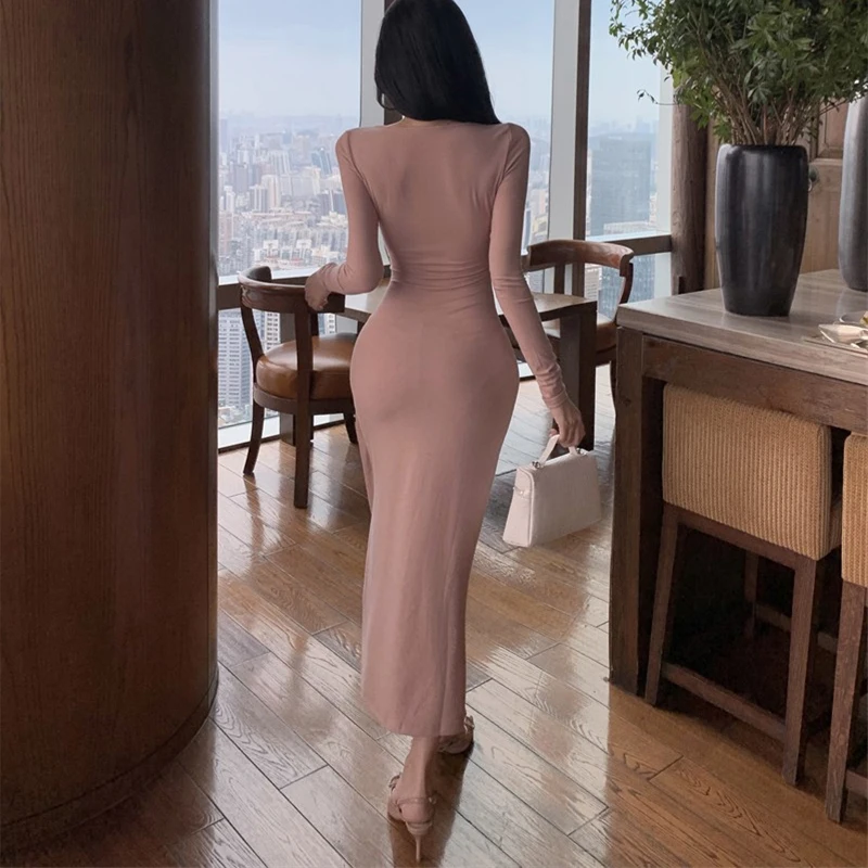 Lace Deep V Neck Hollow Sexy Party Dress Women Solid Slim Long Dress Flare Sleeve Backless Maxi Dress