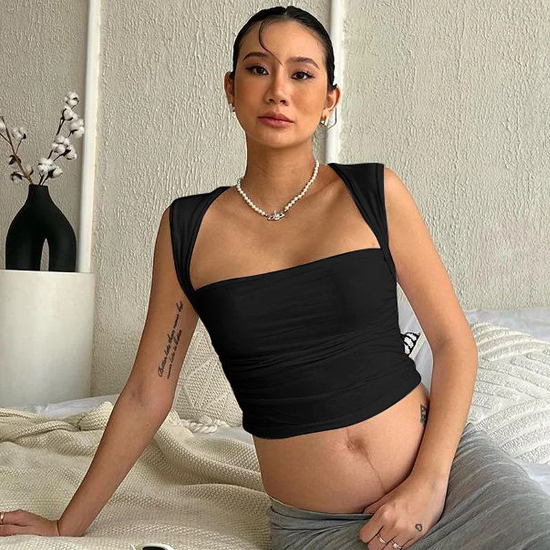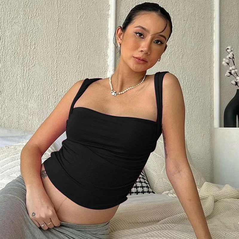 Women's Clothing Summer New Fashion Navel Pleated Slim Solid Color Vest Wholesale