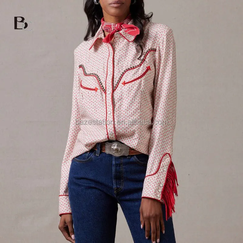 Wholesale Premium High End Luxury Custom Made Country Western Clothing Manufacturers Boho Cowgirl Outfits Embroidered Blouse