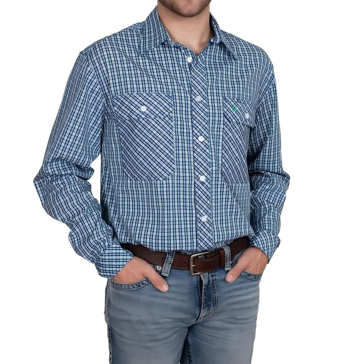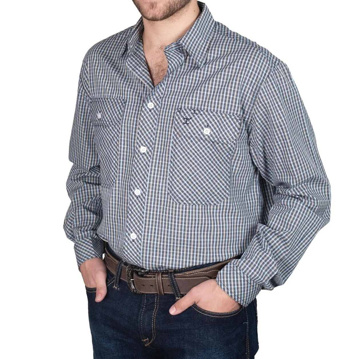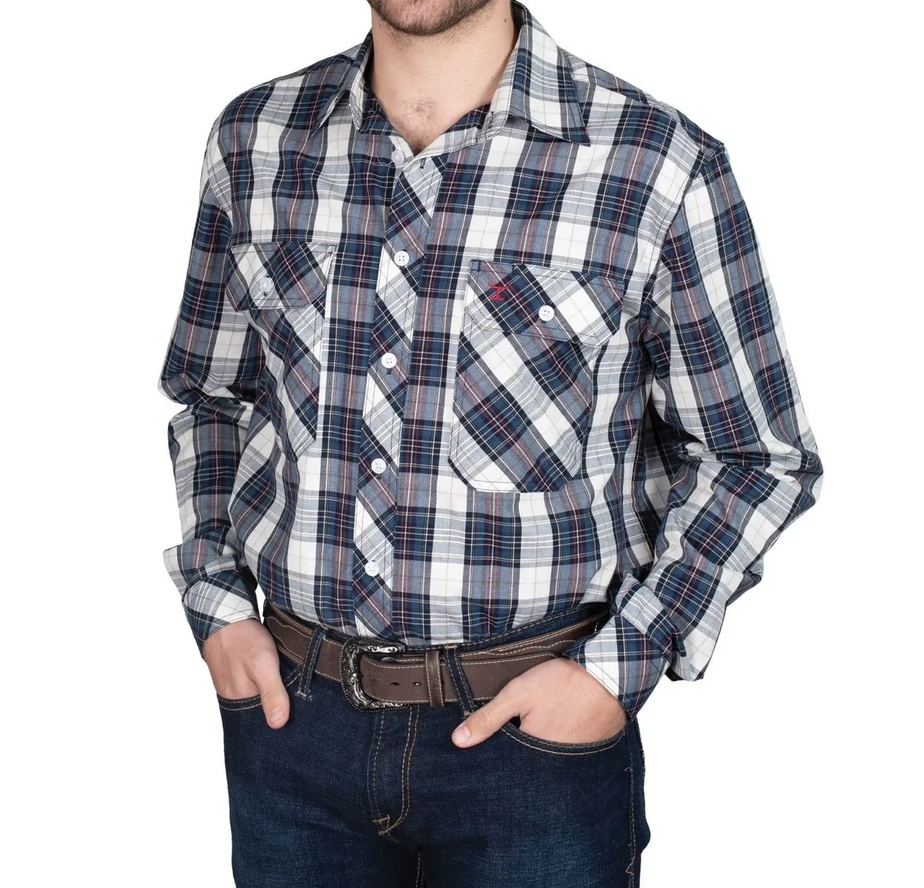Men's Cotton Poplin Country Shirt Long Sleeve Relaxed Fit 100% Cotton Longer Back Tail Long Sleeve Plaid Western Work Shirt