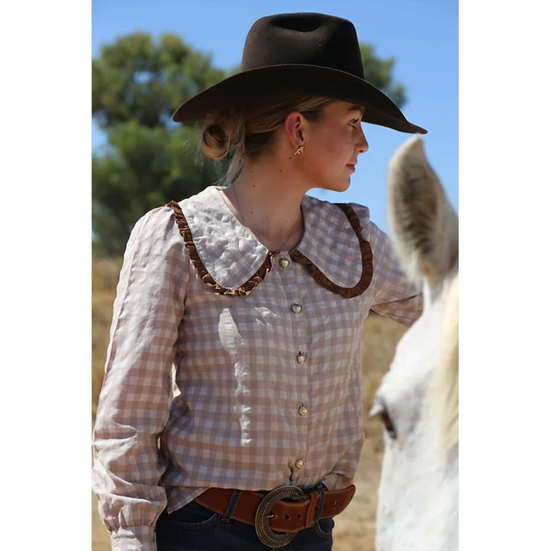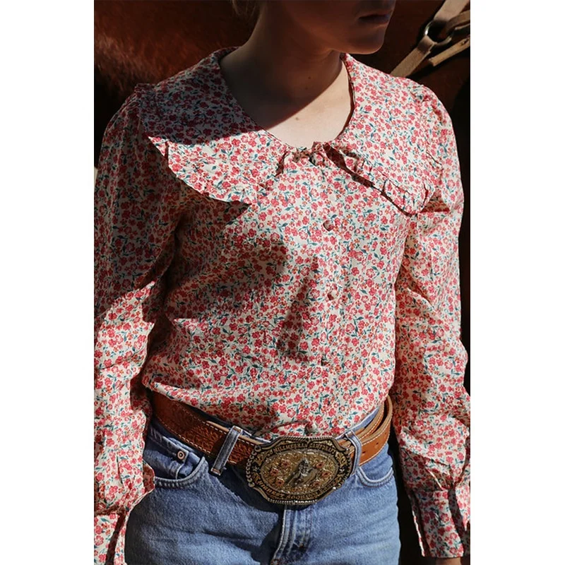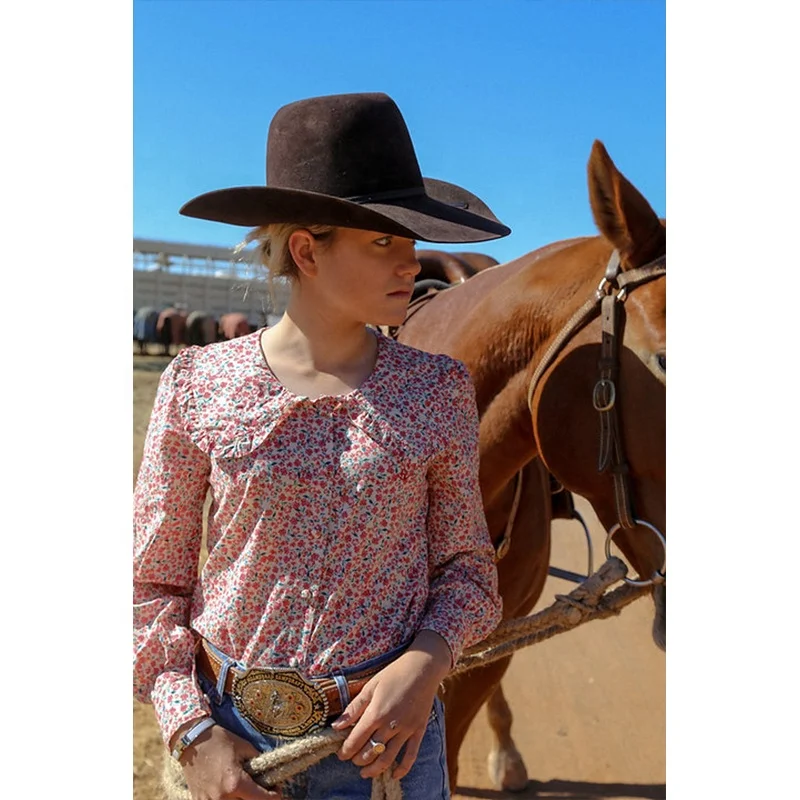 POXIAO manufacturer relaxed fit shirt embroider long sleeve full Buttons cowgirl shirt floral print western country arena blouse