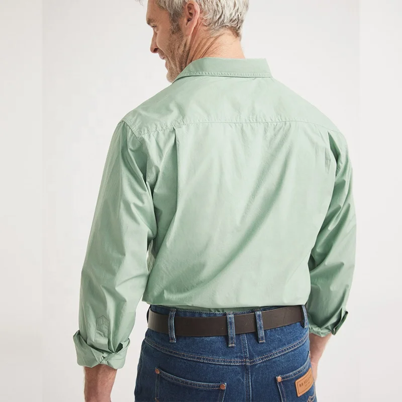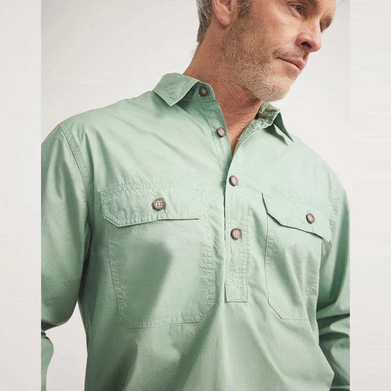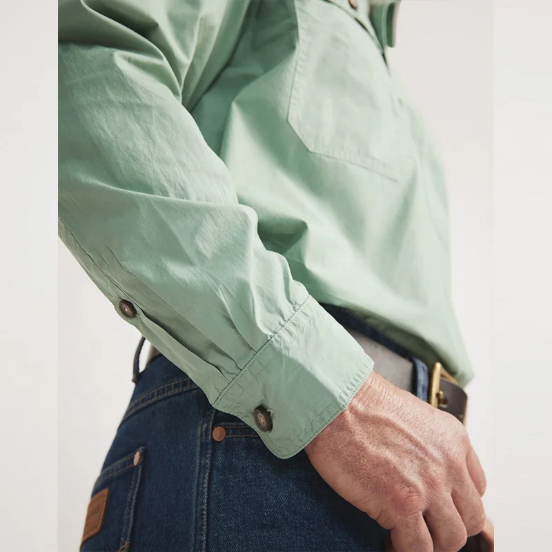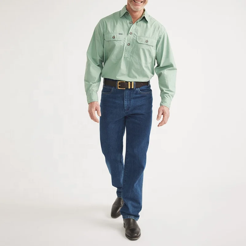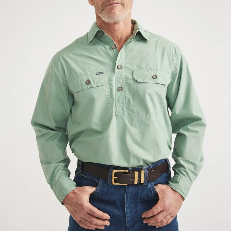 Workshirt Half Button Light Weight 100%Cotton Long Sleeve Cowboy Shirt Tops for Men Western Workshirt