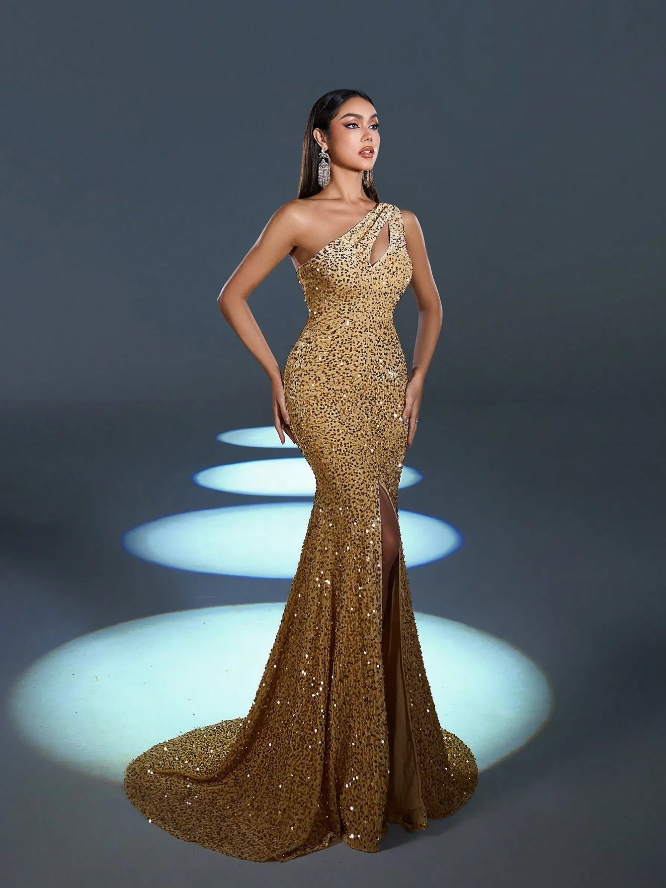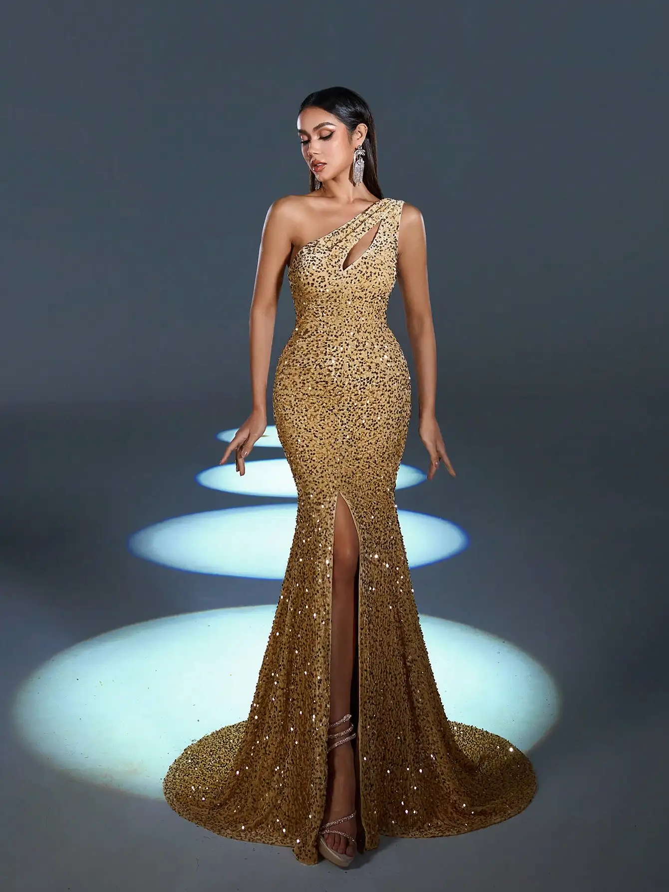 Custom Asymmetrical One Shoulder Bodycon Empire Waist Floor Length Slit Evening Dress Solid Pattern Crepe-Eco-Friendly Party