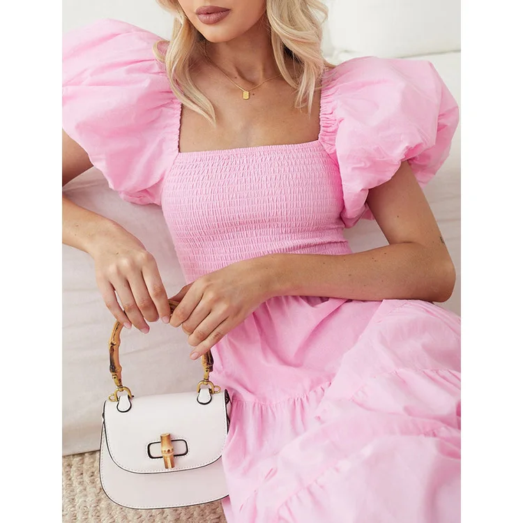 ODM OEM Custom Dress Boutique Clothes Small MOQ Clothing Manufacturer Ruffle Hem Casual Maxi Dresses Women's Smocking Dress