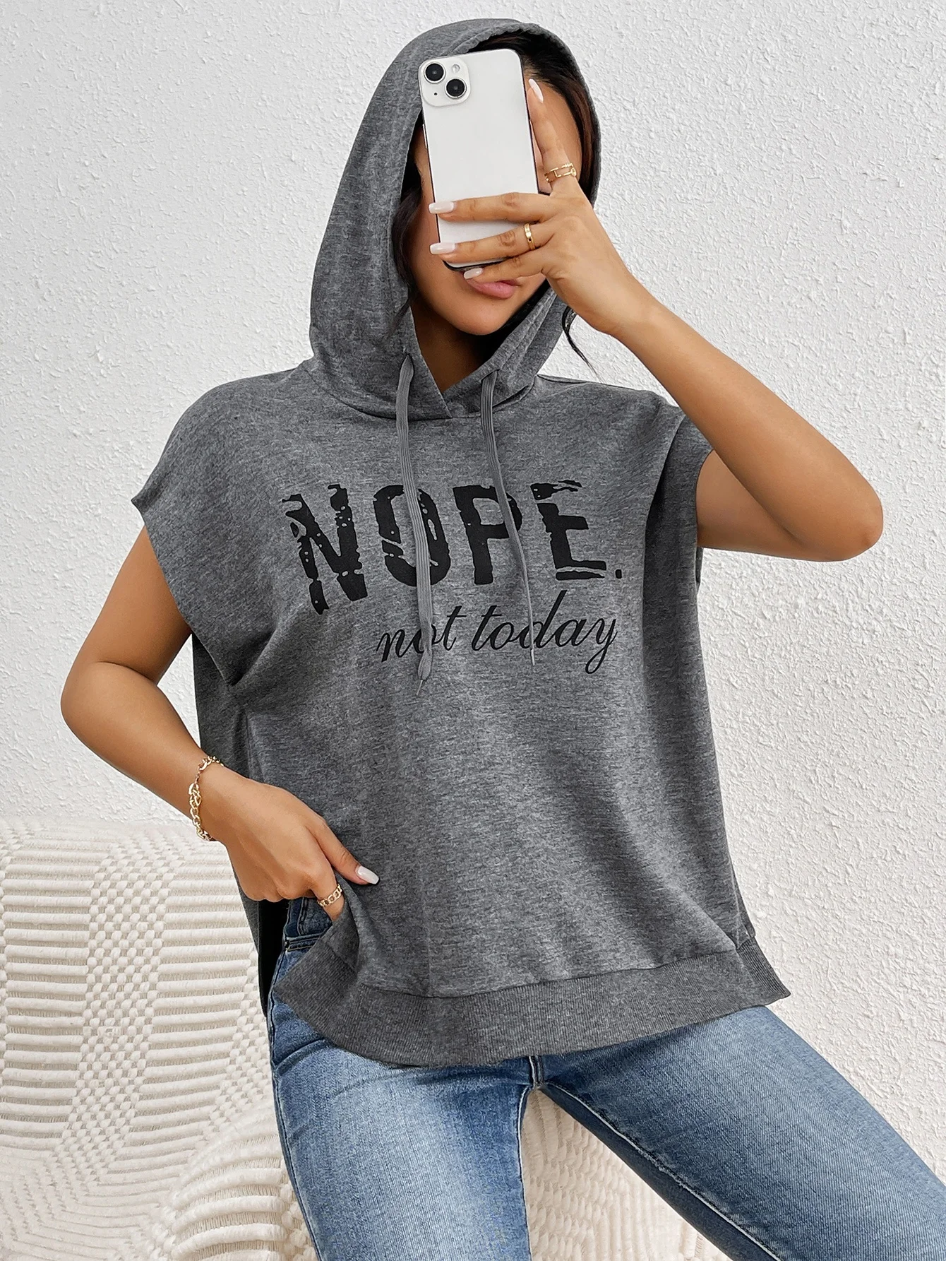 Custom 100% Cotton Ladies' Hooded Short Sleeve T-shirt for Summer