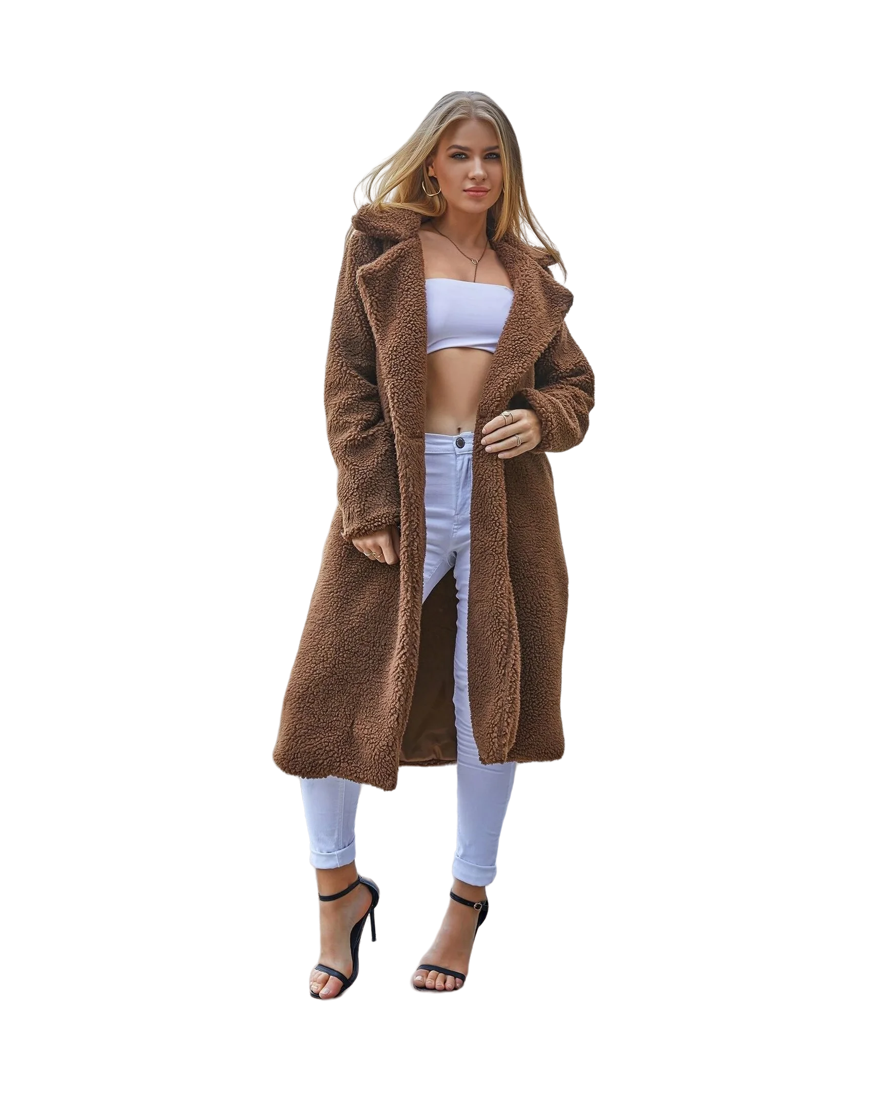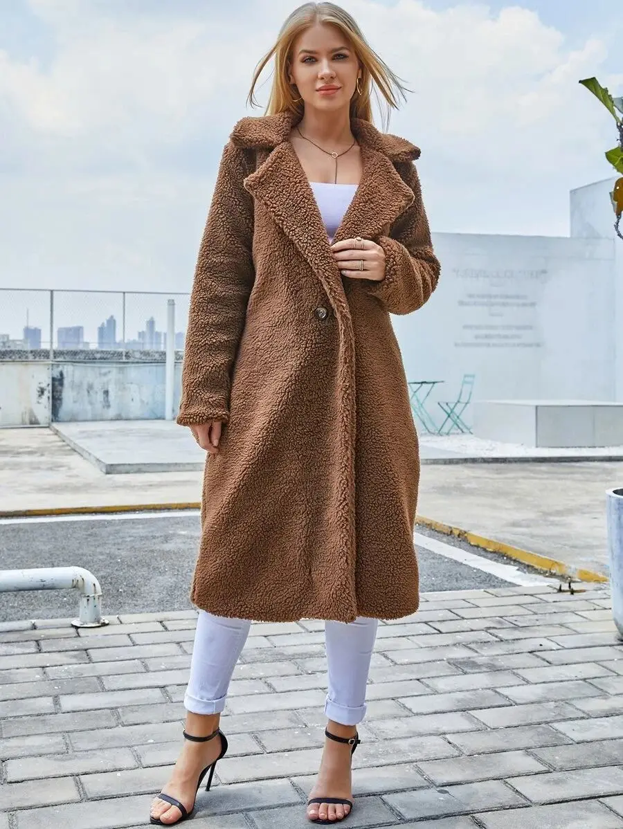 Women Long Jacket Ladies Casual Front Open Cardigan Outwear Fashion Thick Soft Warm Teddy Bear Fleece Fur Fluffy Coat
