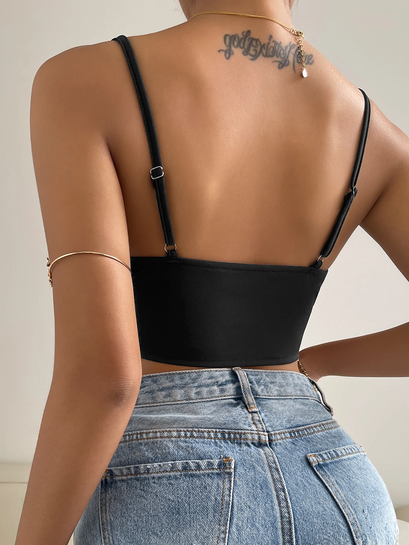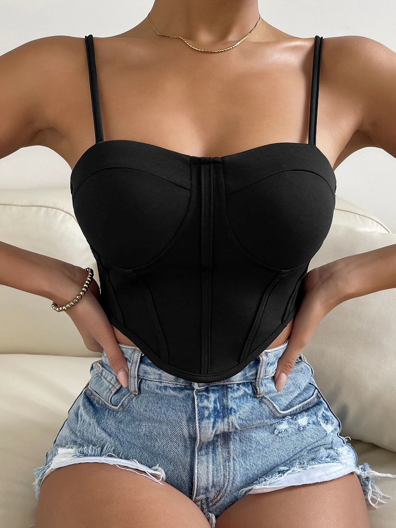 Slim-fit Camisole With Neckline Open Back Deep Love Summer Solid Color Camis Tops Corset Women's Tank Tops