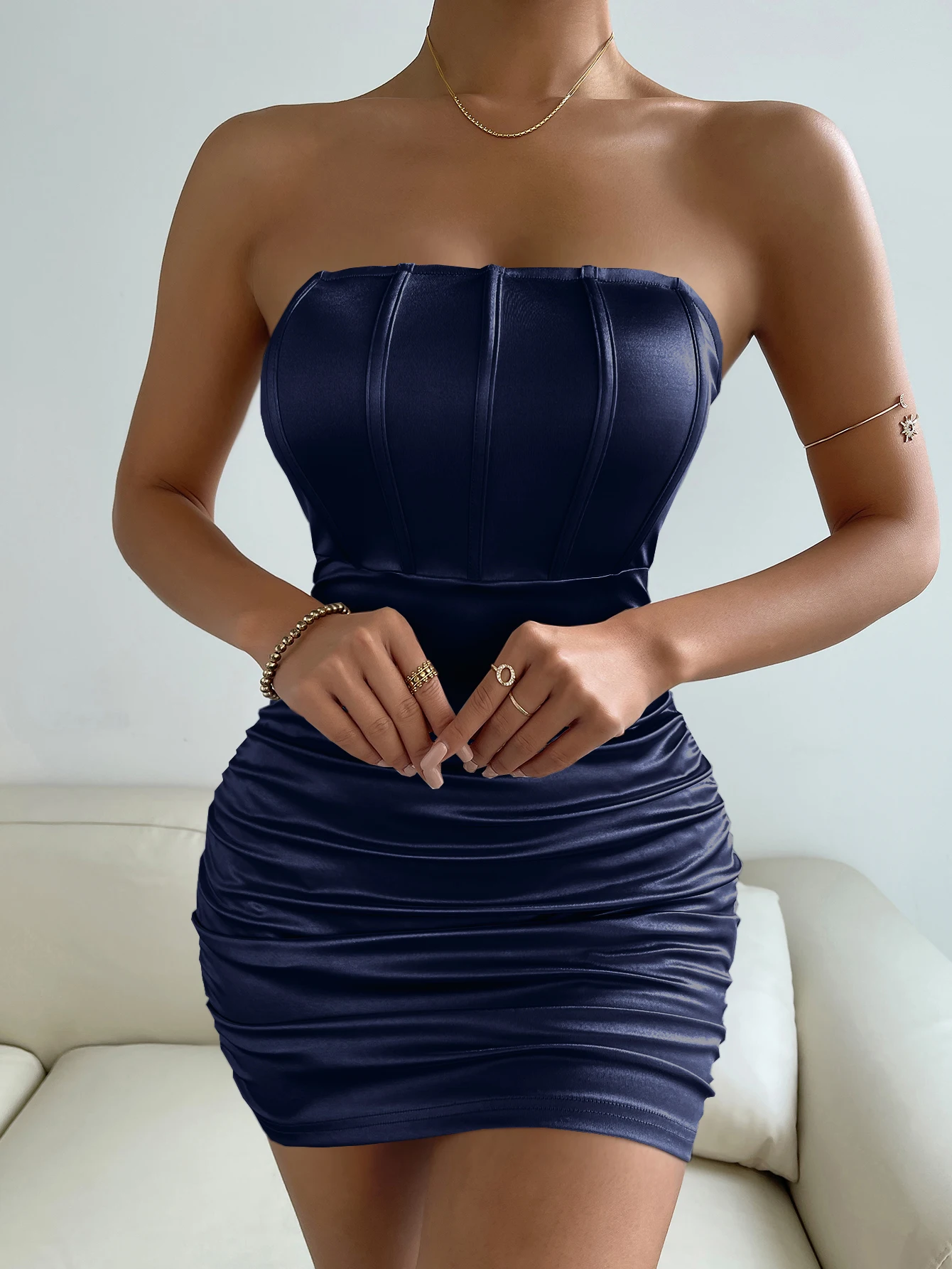 Polka-dot Pleated Halterneck Wrap Hip Skirt Arrivals Tube Top Fish Bone Slim High Waist Dress Solid Color Sexy Bodycon Dresses