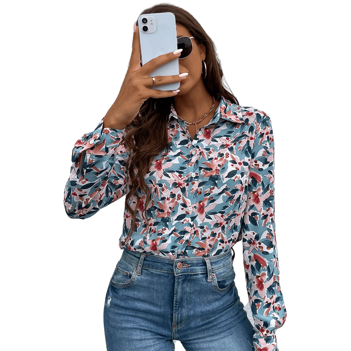 High Quality Floral Print Button Through Blouse Long Sleeve Shirts for Women 2021 Woman Tops Fashionable OEM ODM