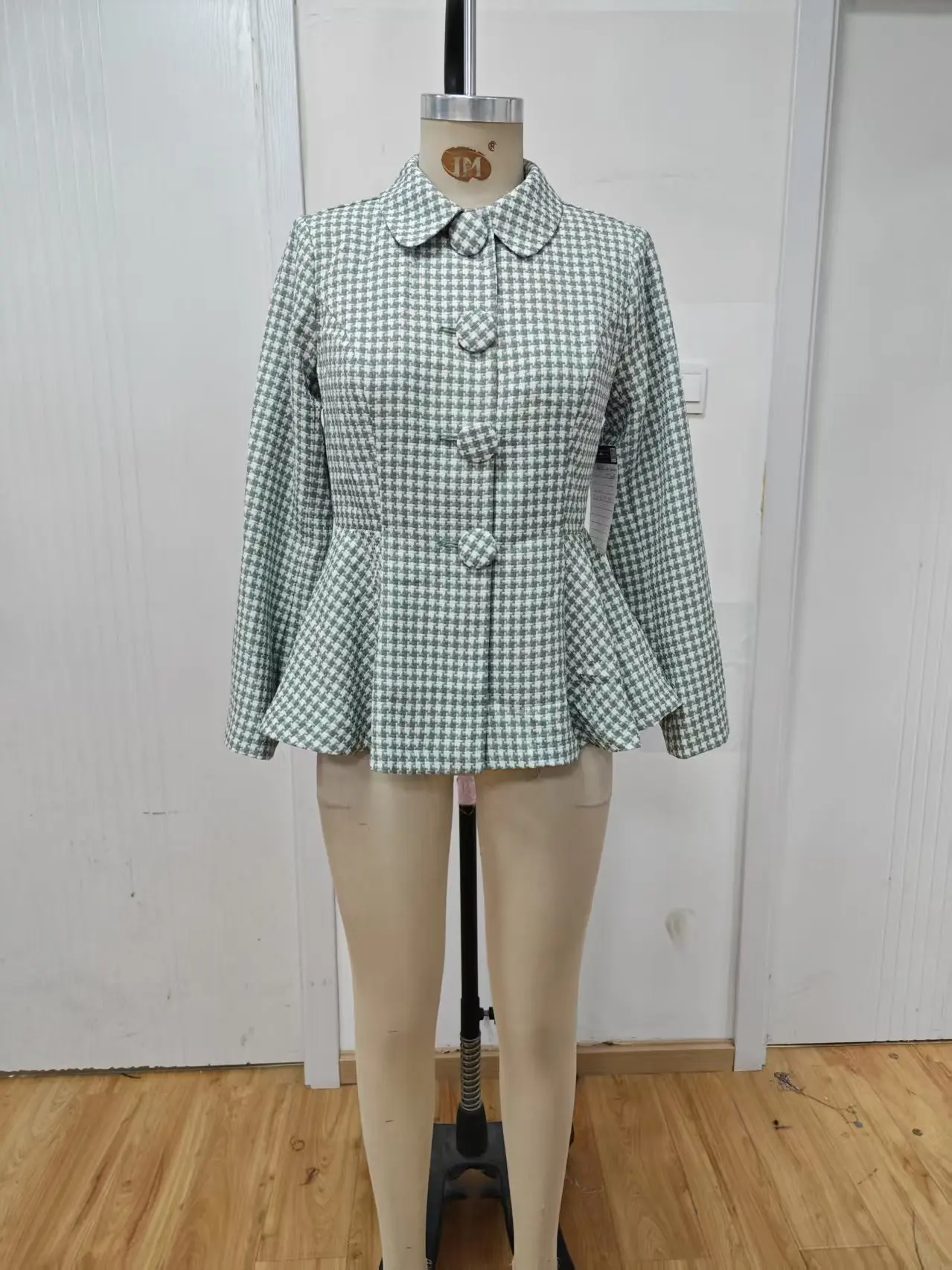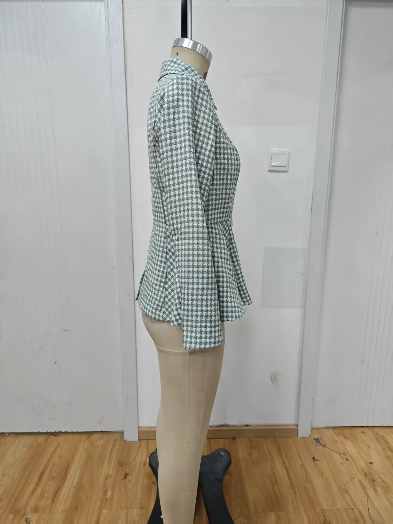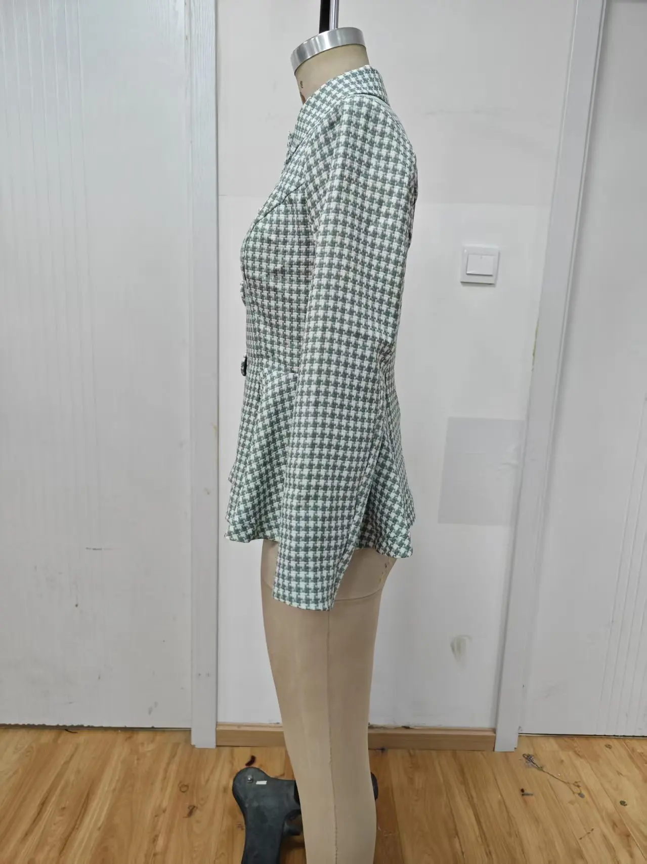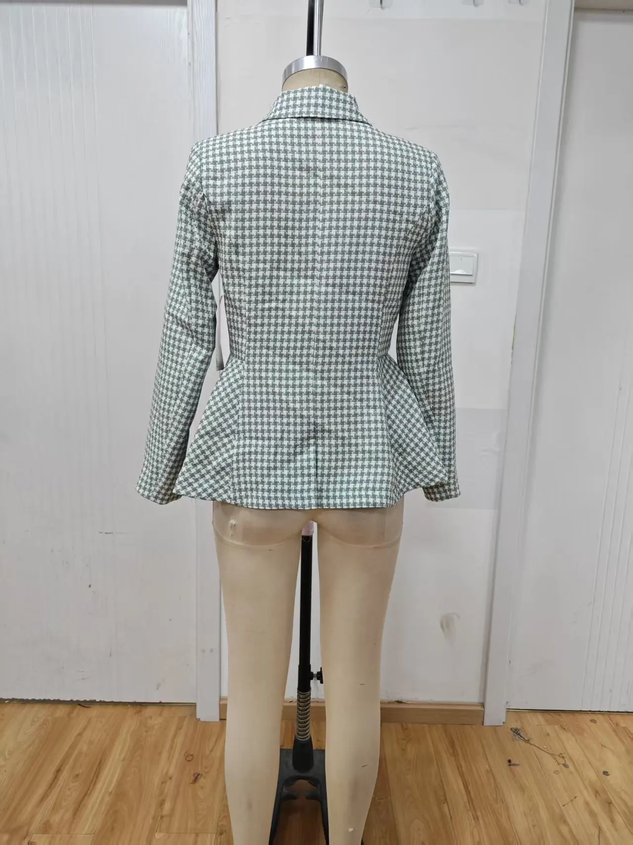 Women's Casual Jacket with Checkered Pattern, Checkered Printed Jacket, Long Sleeved Retro Digital Printing