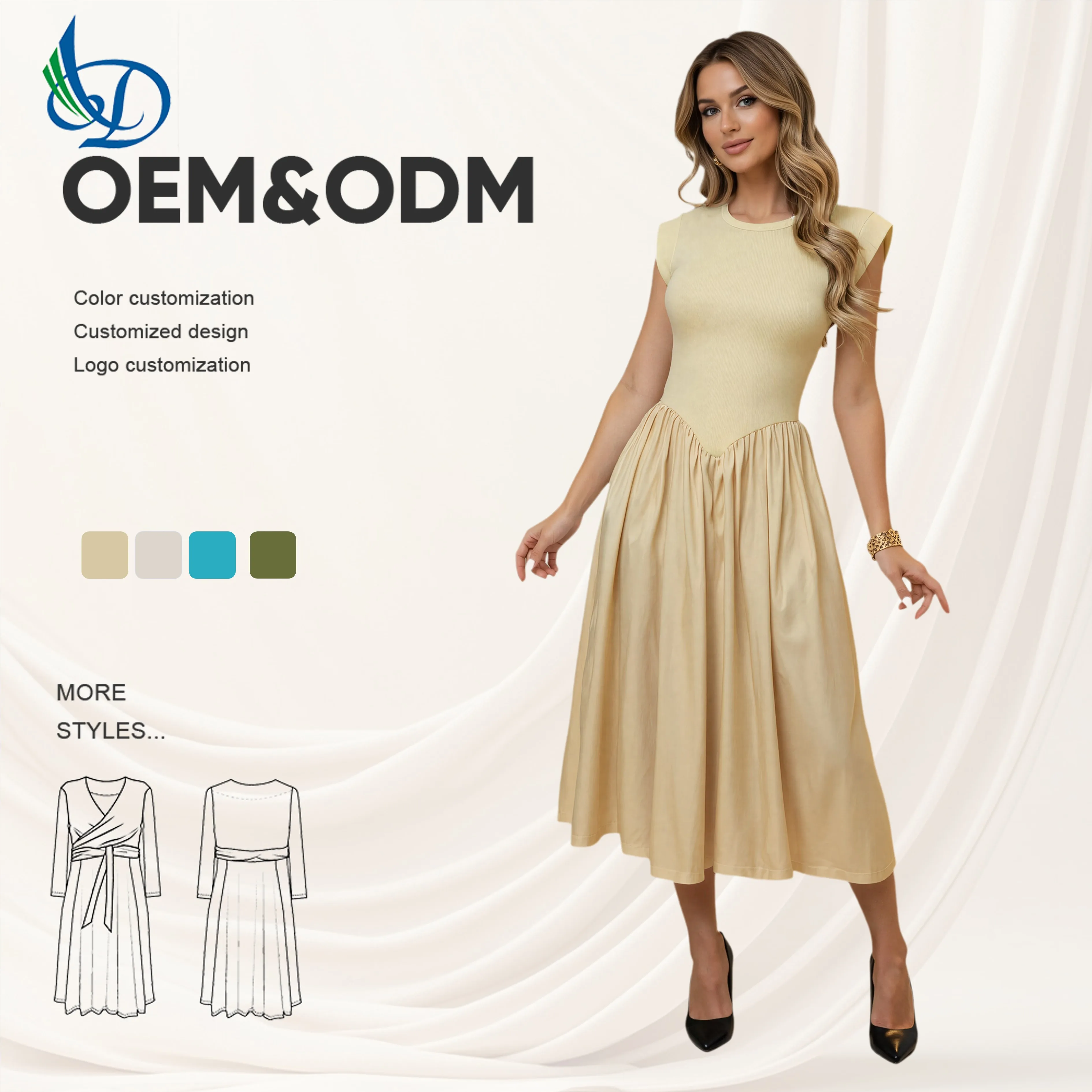 Lady Elegant Women's Yellow A-line Midi Dress, Breathable and Washable, Summer Romantic Casual Dress