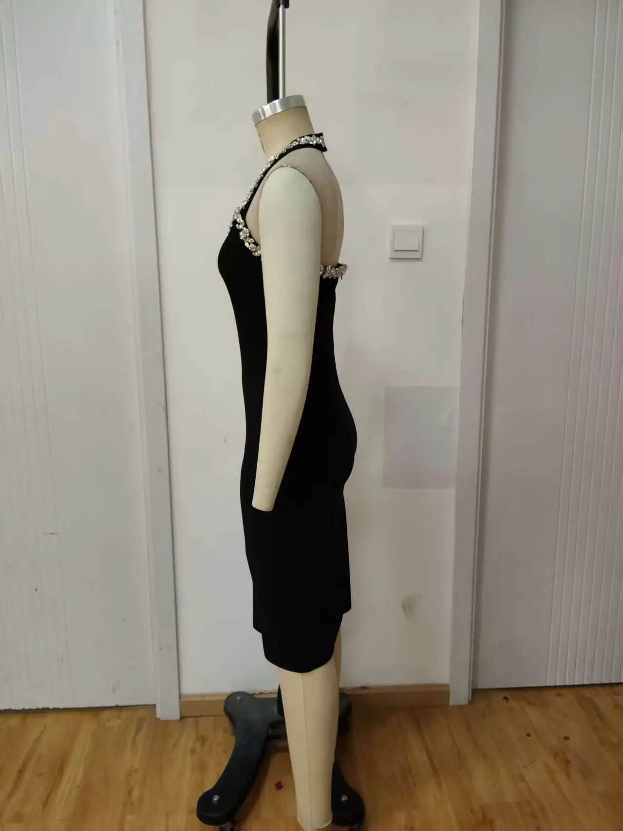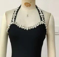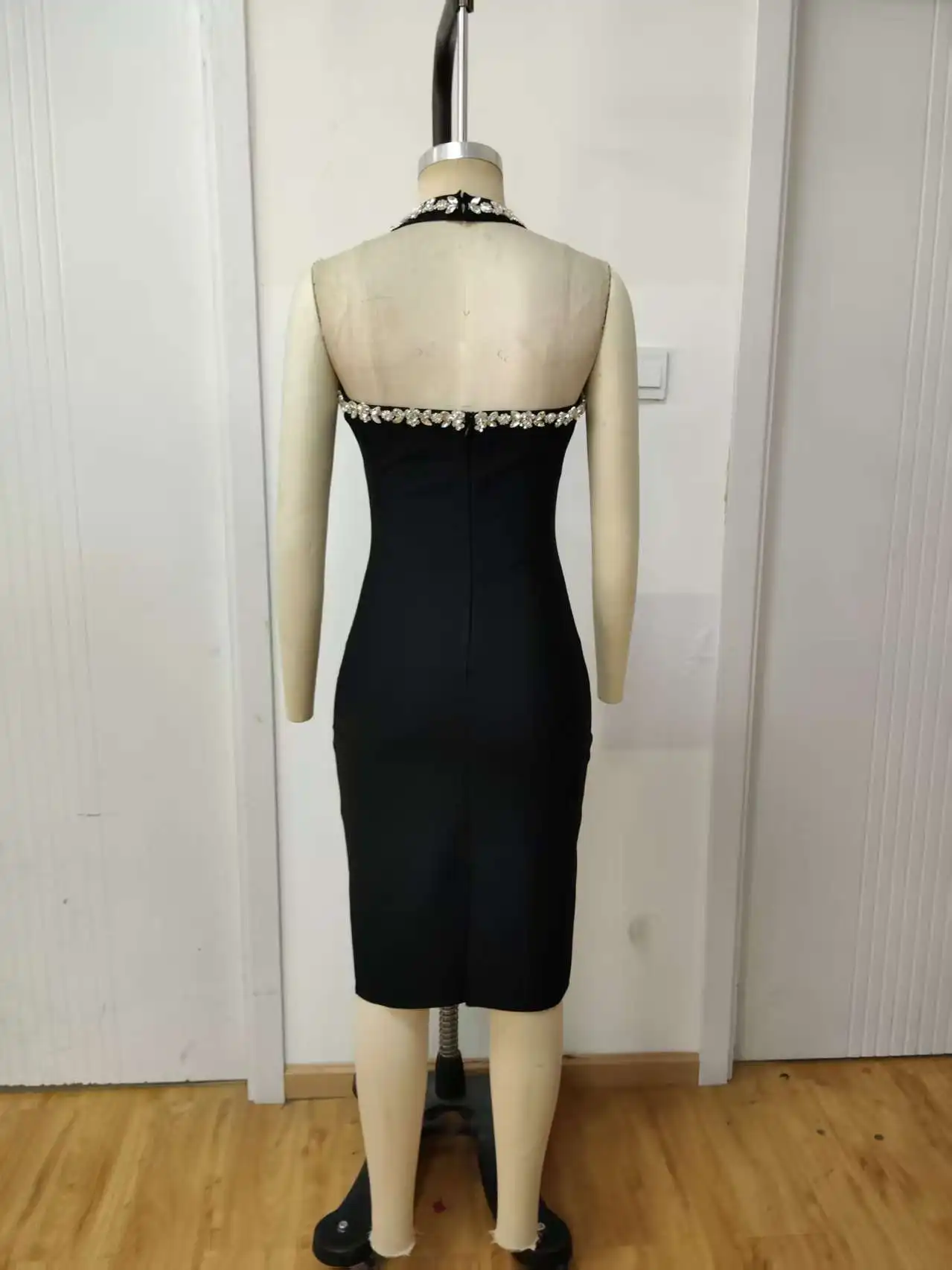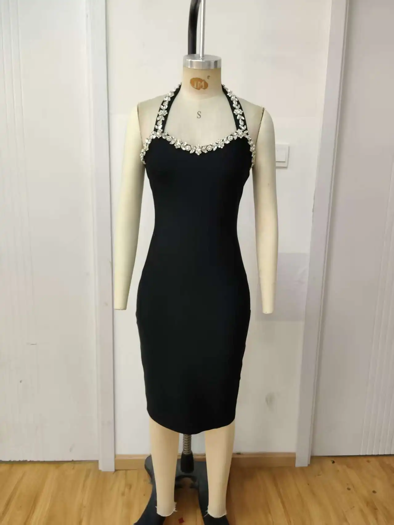 2026 New Solid Color Diamond studded off Shoulder Casual Hanging Neck Knee High Natural Waist Summer Tight Skirt