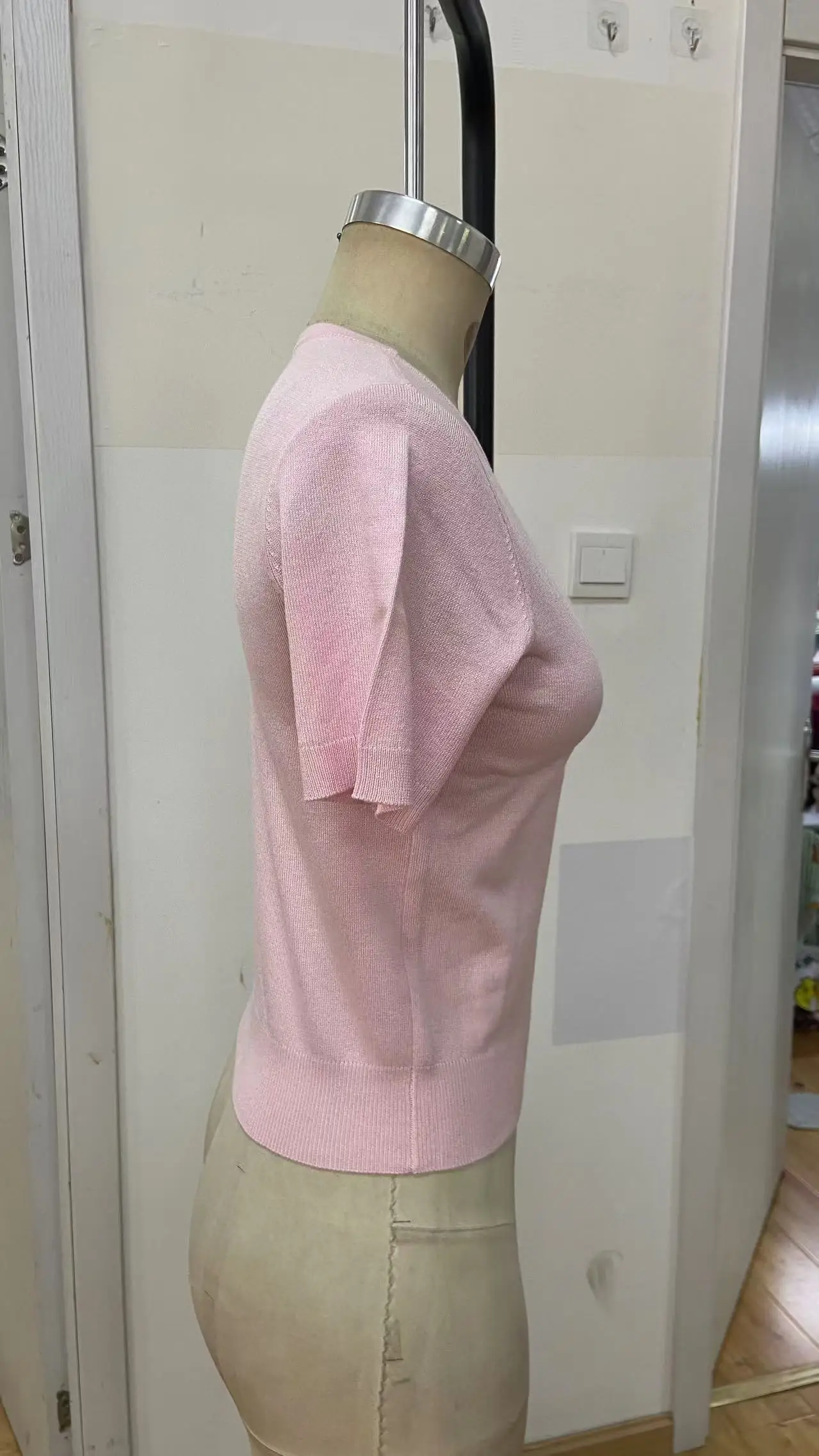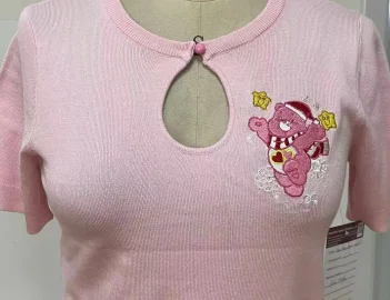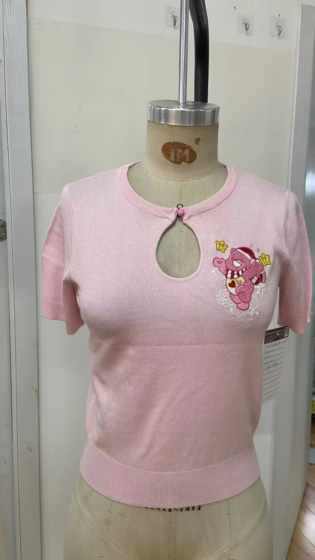 Women's Fashionable Sweet Style Short T-shirt Cute Teddy Bear Embroidery Slim Fit Summer Knitted Fabric