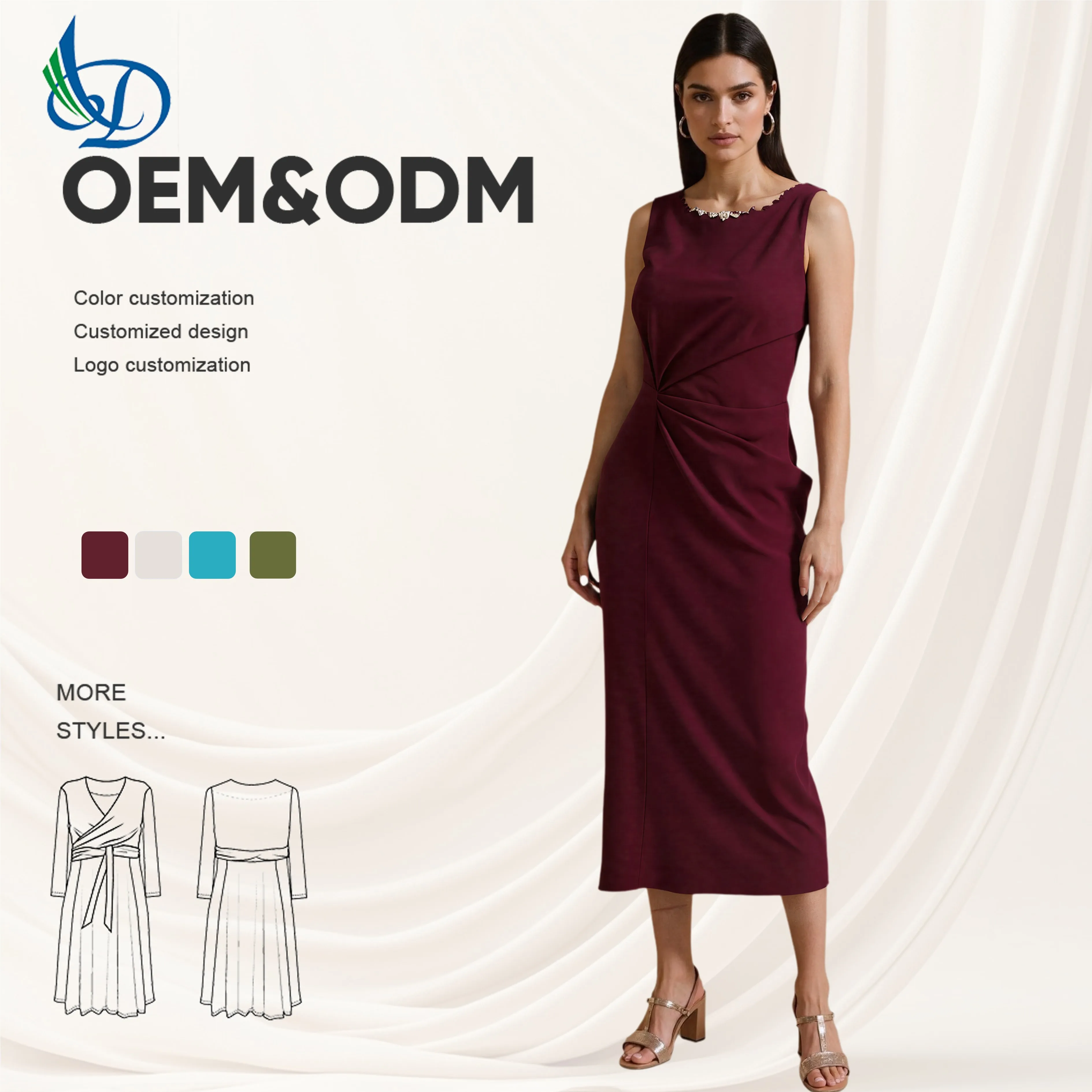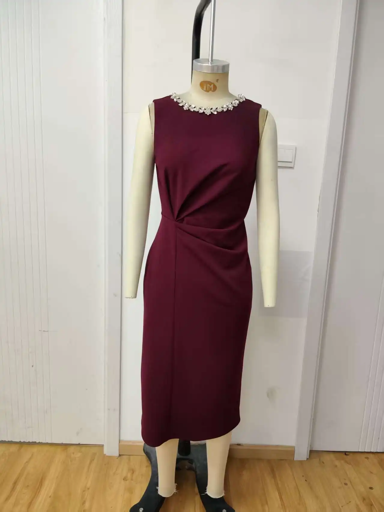 Women's Dress Office Women's Woven Round Neck Solid Color Natural Waist Anti Wrinkle OEM Service Available