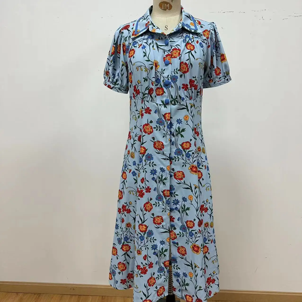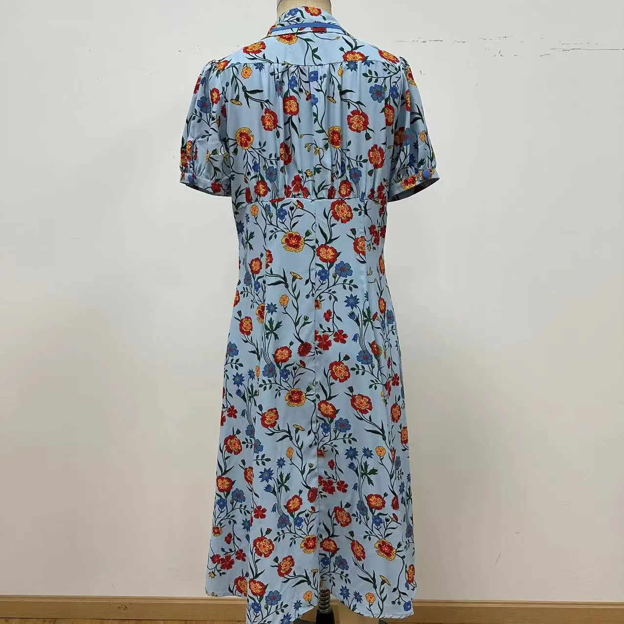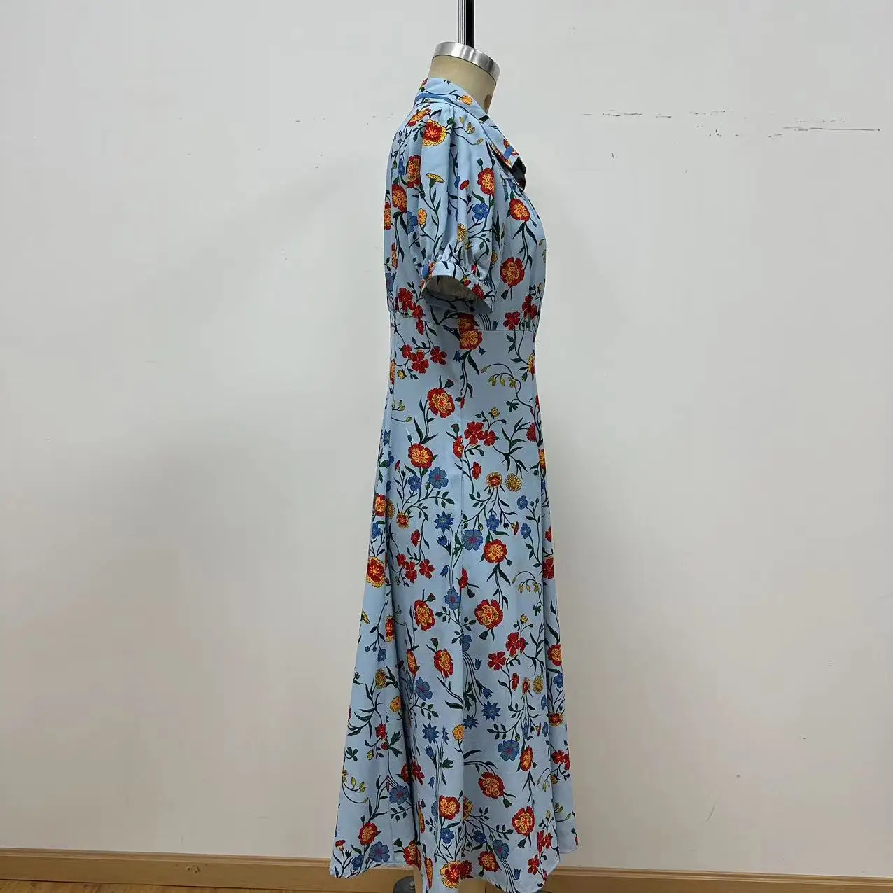 OEM Accepted Eco-Friendly Natural Waist Button Decoration Sweet Maxi Woven Long Dress Retro for Women